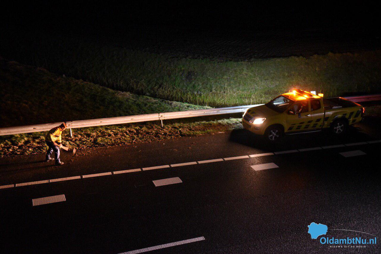 Auto schuift vangrail in op A7 bij Scheemda