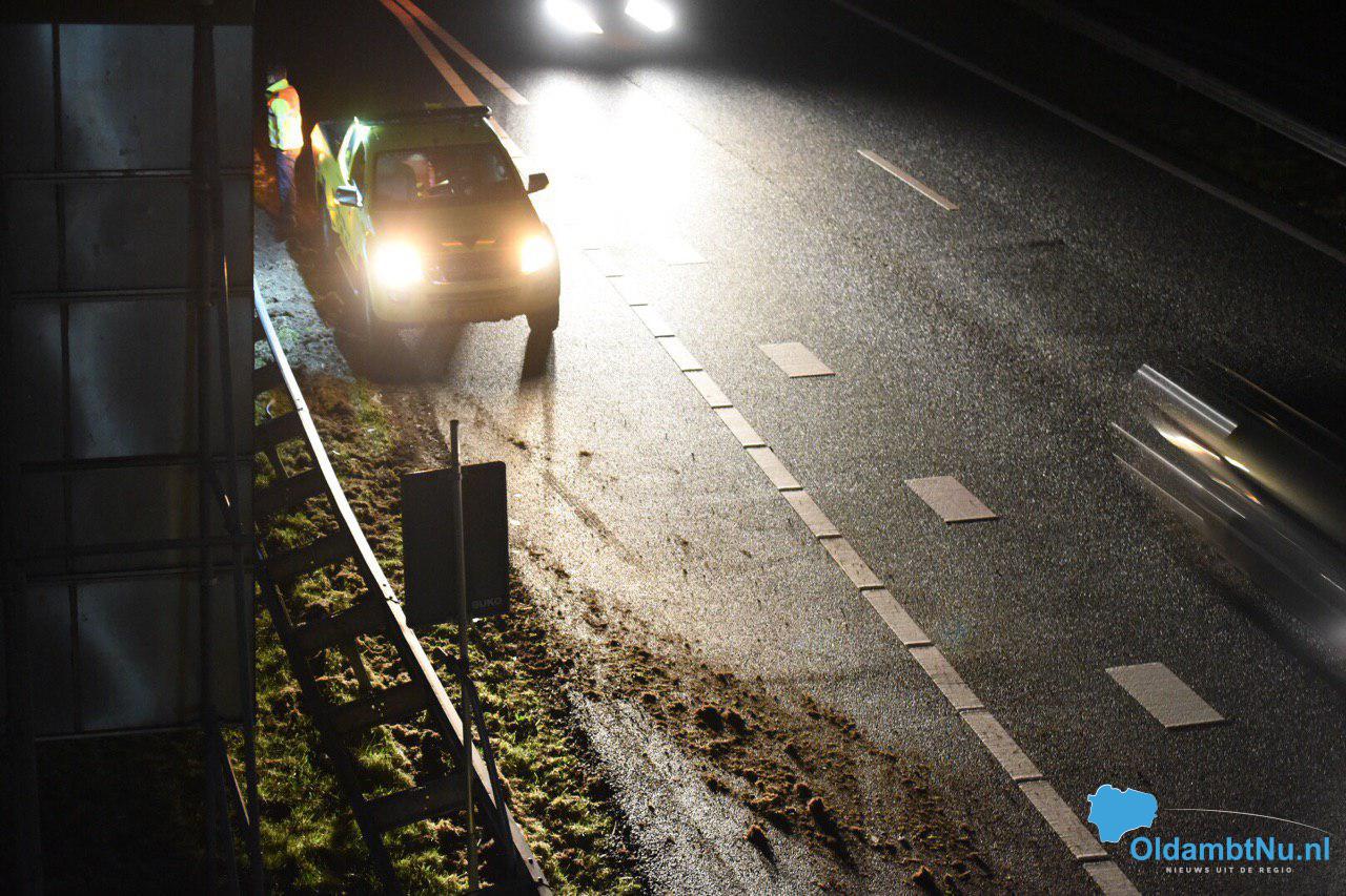 De inzittende(n) zijn gecontroleerd in een ambulance, het is onbekend of er iemand gewond is geraakt. Een berger heeft het voertuig afgesleept. Rijkswaterstaat nam de schade op en heeft de vluchtstrook schoongeveegd.