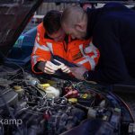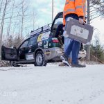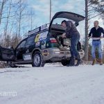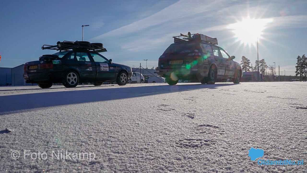 Onderweg naar Stockholm gaat het landschap al vrij snel over in een winterlandschap. De rit verloopt tot nu toe mooi, maar er is ook weer tijd voor gesleutel. De achterlichten zijn buiten werking geweest door een kortsluiting in de dakverlichting en het hitteschild klapt tegen de aandrijfas aan! Het blijft ten slotte een barrel challenge, dat gaat niet vanzelf! Gelukkig hebben we de kunde in huis.