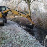 De ijsbaan stond een maand geleden wel onder water, maar dat water is ook weer verdwenen. Waarschijnlijk via ondergrondse stromingen trekt het water weg. Maar het bestuur wanhoopt niet en heeft een loonbedrijf ingeschakeld om de aanvoersloot uit te baggeren, zodat er weer voldoende water komt bij het punt waar de pompen zijn.