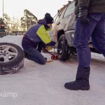 De overtocht naar Turku was rustig, dat komt mede doordat je niet echt veel over open zee vaart. Bij aankomst in Finland stond de andere rokkers gelijk een klusje te wachten, een bandenwissel met spikes! Wij rijden 4×4 met winterbanden, dan ploeg je aardig makkelijk door de sneeuw heen. Vooralsnog!
