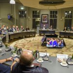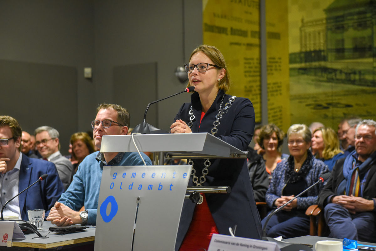 Voorzitter Alida Michels opende de vergadering, waarna de commissaris van de koning, de heer Paas het woord nam. Met een mooi persoonlijk woord gaf hij aan, aan welke voorwaarden de nieuwe burgemeester volgens de Oldambtster bevolking en gemeenteraad zou moeten voldoen. En gezien de achterliggende carrière en Groningse geboortegrond verwacht de heer Paas dat zij aardig aan veel punten voldoet.