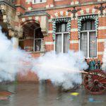 Winschoten – Met een oorverdovende knal uit een klein kanon is de 7e november de 206e Adrillen door burgemeester Cora-Yfke Sikkema geopend. In het jaar 1816 was de eerste Adrillen en was toen één van de grootste veemarkten in de provincie Groningen. “Wij kunnen het ons nu niet meer voorstellen, maar in het jaar 1891 werden er maar liefst 2200 dieren aangeboden. Naast vee was er toen ook al een grote warenmarkt.” zegt burgemeester Sikkema.