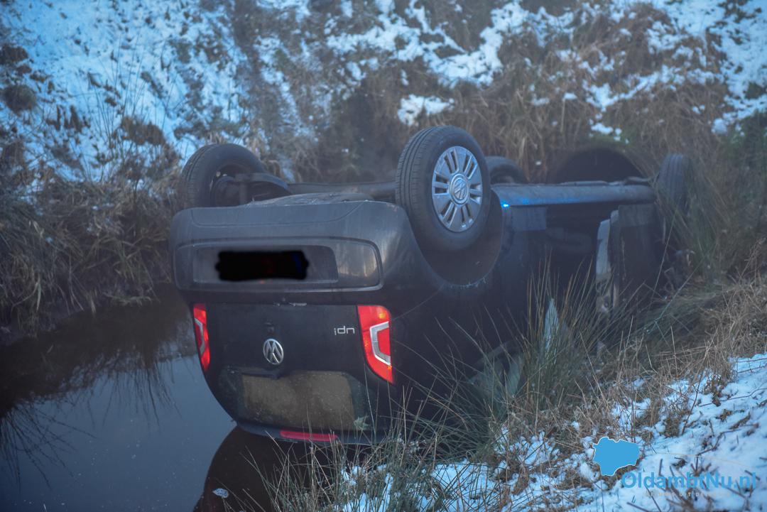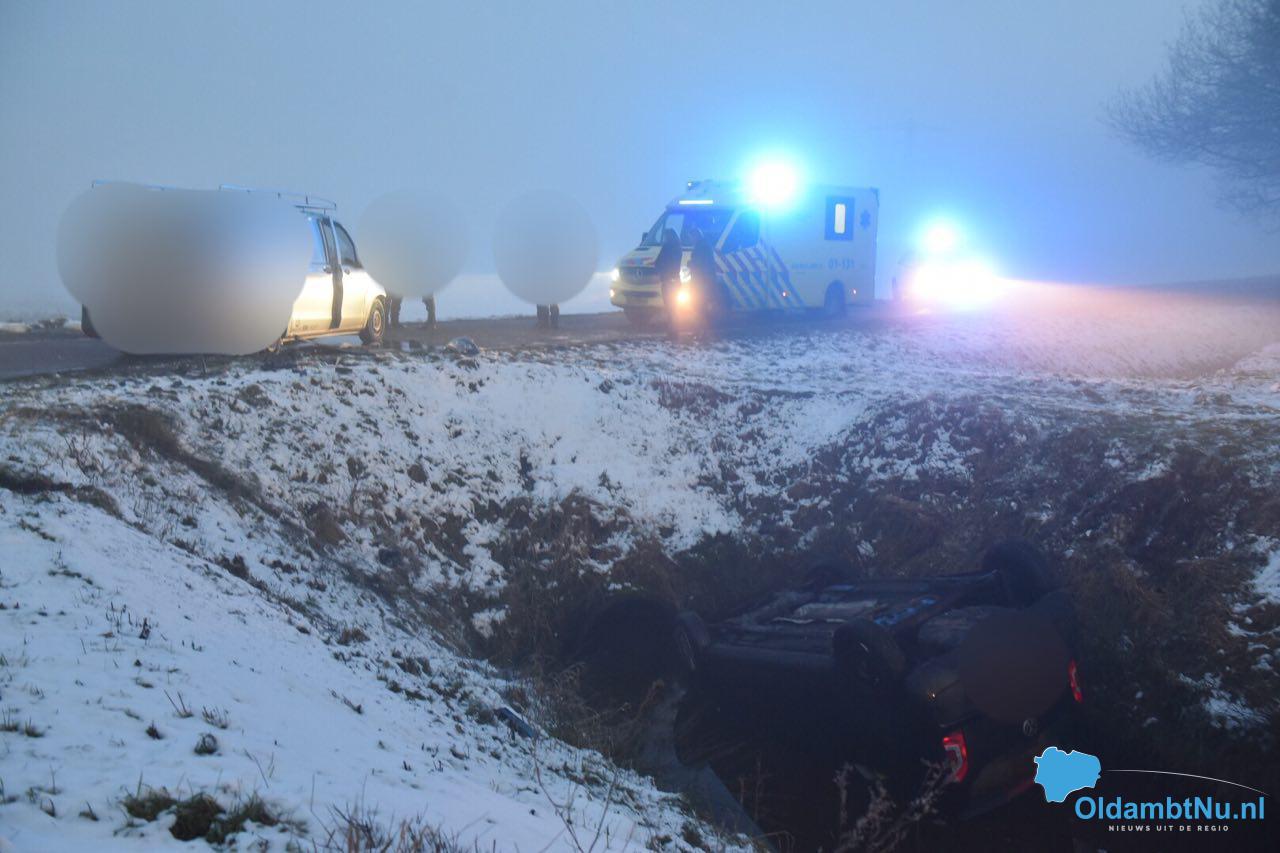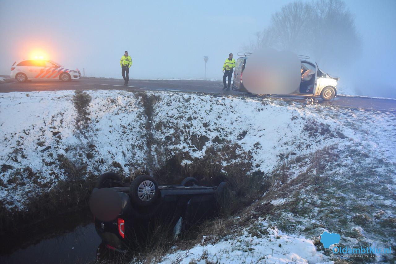 Westerlee – Op het beruchte kruispunt, de Emergoweg met de D.H. Vinkersweg bij Westerlee, is donderdag aan het einde van de middag een auto op de kop in de sloot beland. Er was plaatselijk zo’n 50 tot 100 meter zicht, dit wegens de dichte mist.
