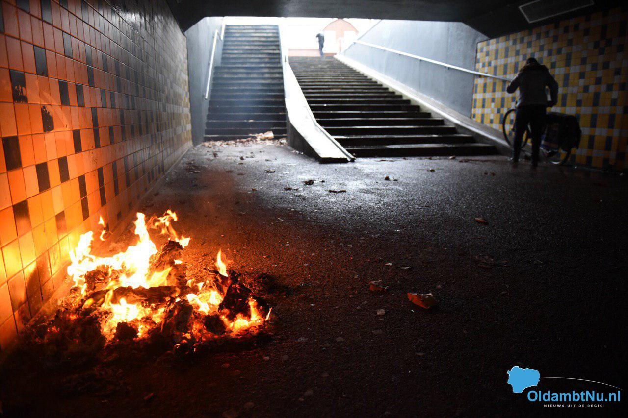 Winschoten – Een stapel folders is vrijdagmiddag in brand gestoken in het tunneltje bij het station in Winschoten. Door de rook en stank kreeg de politie al snel melding waarna ze met een emmertje water het brandje wisten te blussen, hierdoor hoefde de brandweer niet gealarmeerd te worden.