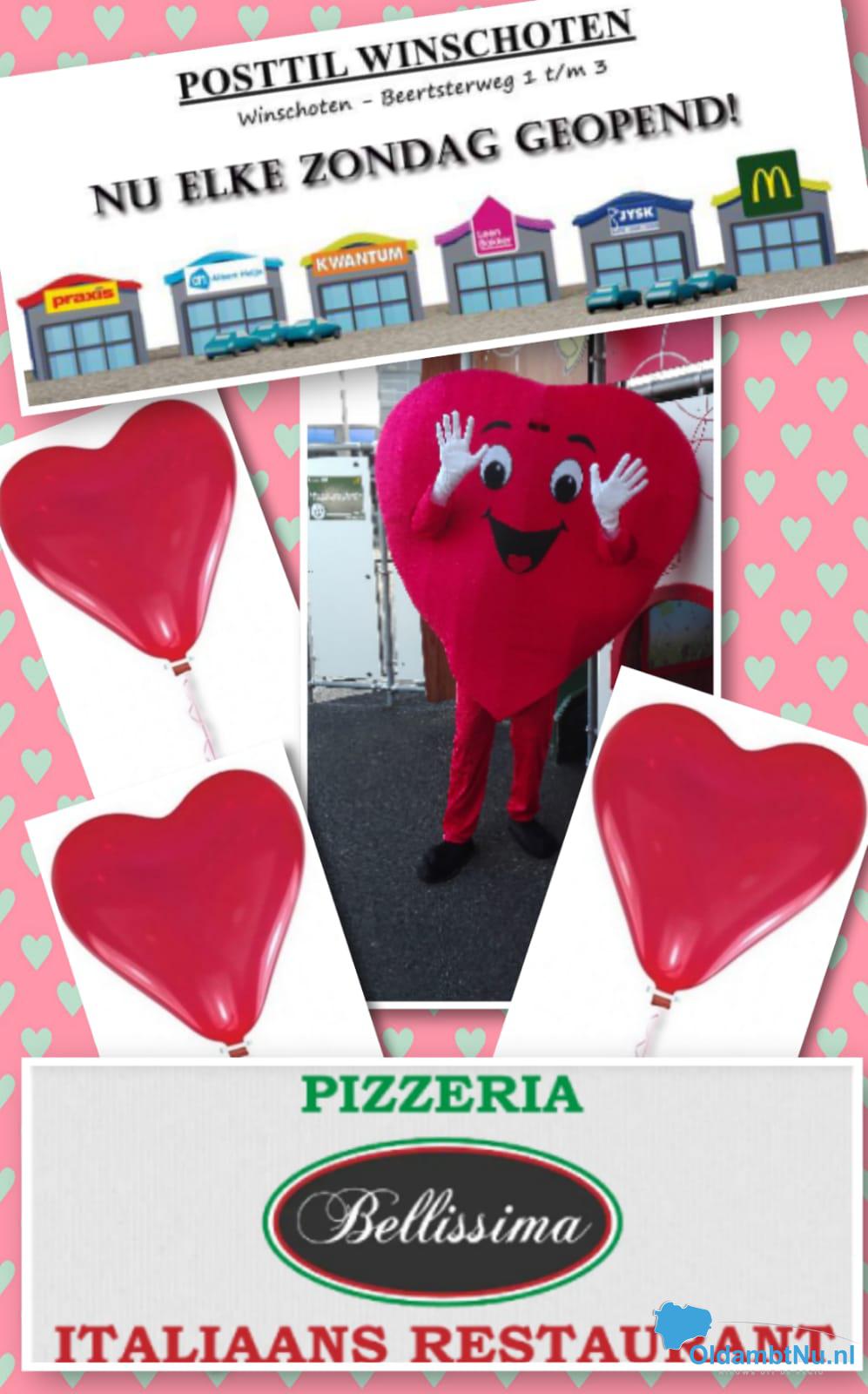Winschoten – De winkeliers op het Postill terrein in Winschoten hebben de handen ineengeslagen en in de februarimaand een actie op touw gezet. Zondagmiddag 10 februari ontvangen de bezoekers een hartballon, dit uit handen van een Valentijnshart.