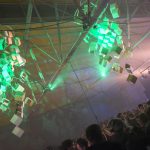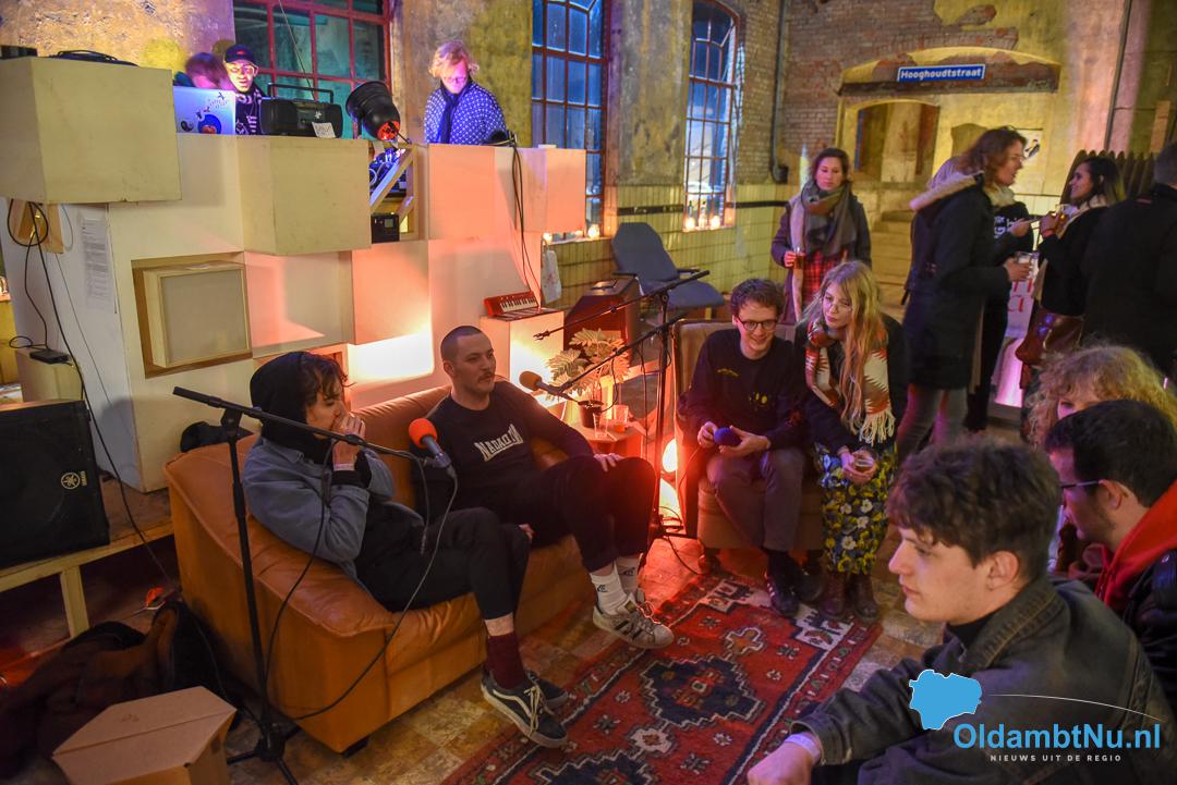 De Toekomst is van binnen nu nog leeg, dus de diverse podia waren door het hele pand te vinden. De opening was spectaculair met een prachtige kunst projectie van het Blauwe Uur op het pand en zongen Lucky Fonz III en De Likt live het lied van Drs Pé over strokarton.