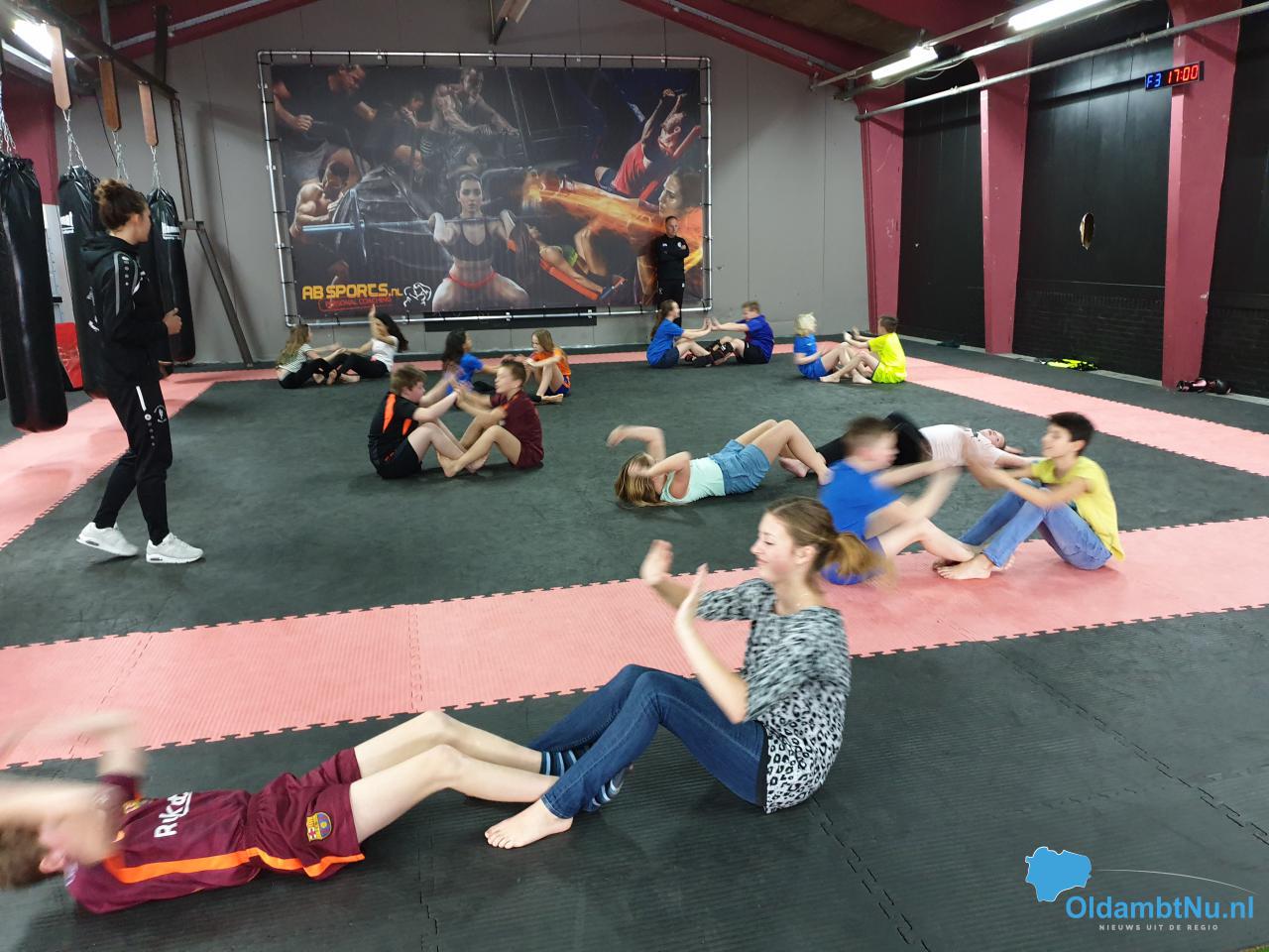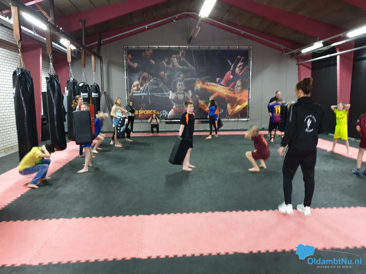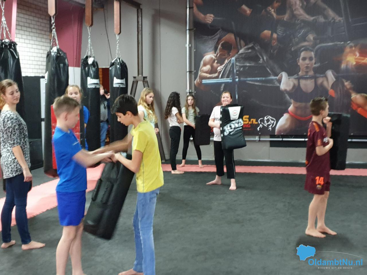 Leerlingen van de Sint Vitusschool krijgen les van kickbokser Sarèl de Jong