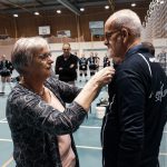 Namens de Nederlandse Volleybal Bond (NeVoBo) was scheidsrechterscoördinator Marian Folmer aanwezig om Vonck de gouden officialspeld te overhandigen, terwijl de ander vier de zilveren officialspeld kregen.