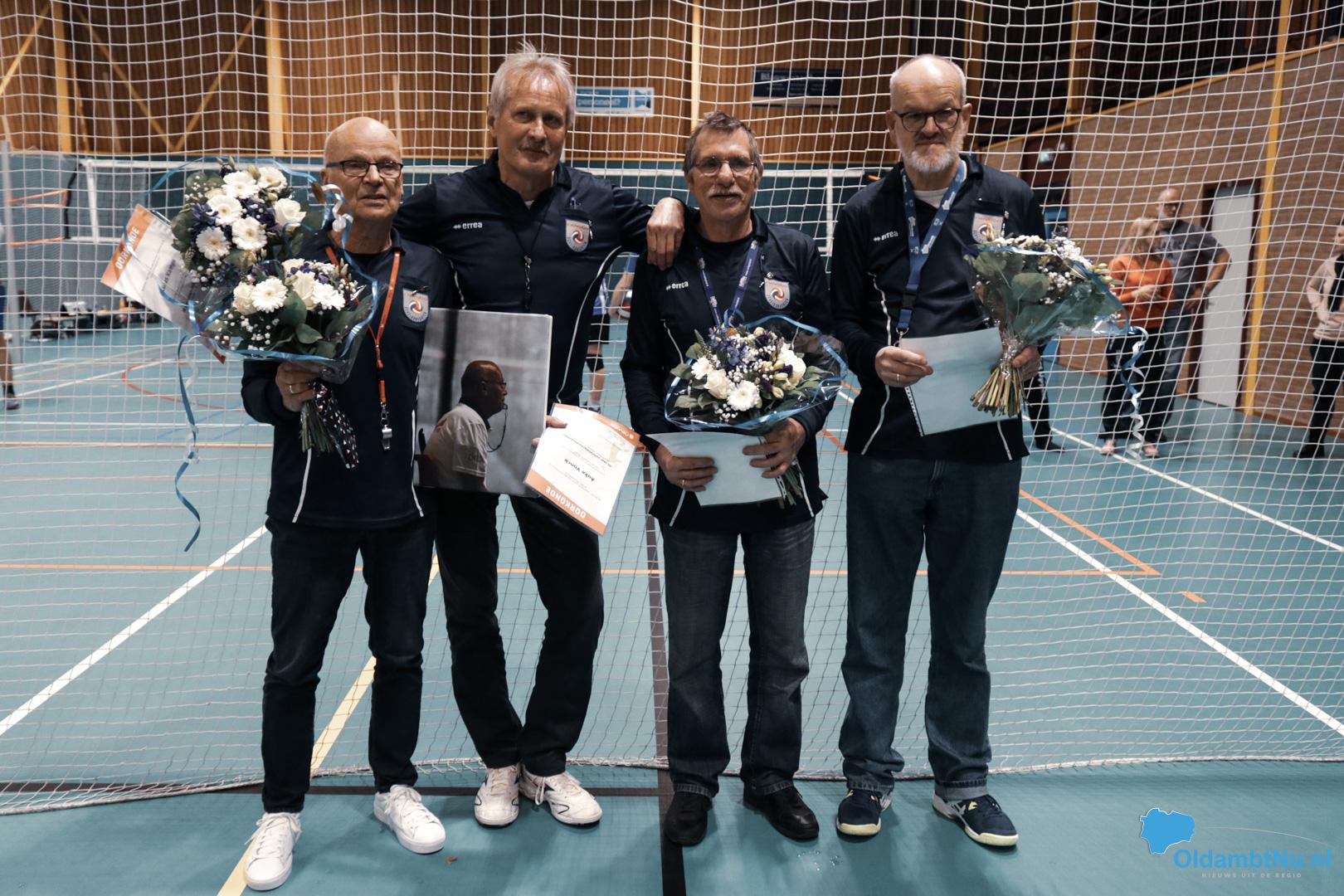 Auke Vonck leidt al meer dan 40 jaar volleybalwedstrijden in goede banen. Anita Huizinga, Lucas Kamps en Joop Sillius hanteren al 30 jaar de scheidsrechtersfluit, terwijl Michiel Dietvorst 25 jaar actief is.