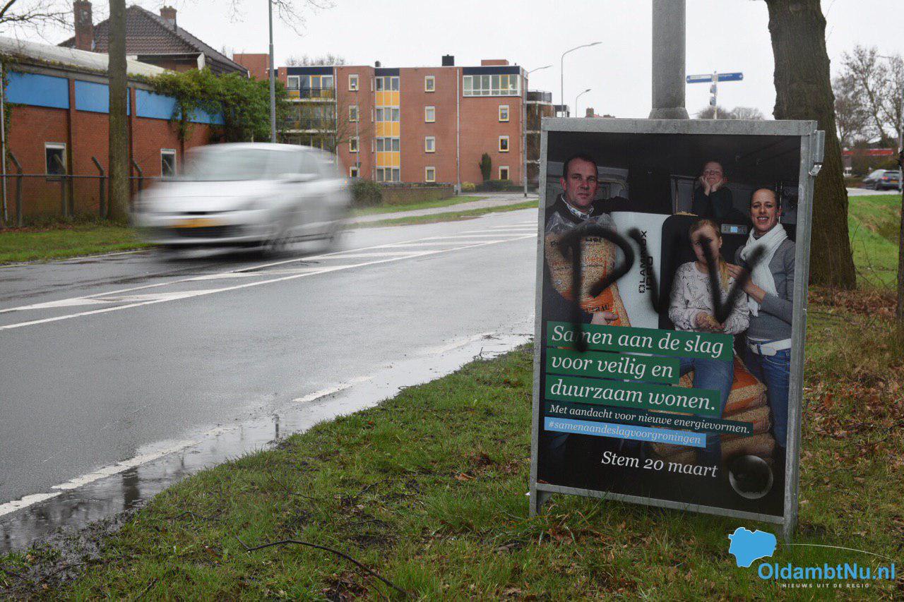 Het is nog onbekend hoelang de teksten al op de borden staan. Onder andere de verkiezingsborden van CDA, Groningerbelang en Groenlinks zijn beklad.