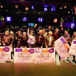 Winschoten – Het belangrijkste moment tijdens de Finale Avond was natuurlijk de uitreiking van de cheques. Het werd een zinderende finale. Nadat vier prijswinnaars op het podium uitgebreid werden gefeliciteerd zaten de dames van de zwemvereniging Musselkanaal vol spanning te wachten. Waren zij vergeten? Waarom was hun envelop er nog niet bij. Niets bleek minder waar. Hun club kreeg maar liefst 400 stemmen en was daarmee de grote winnaar van de avond.