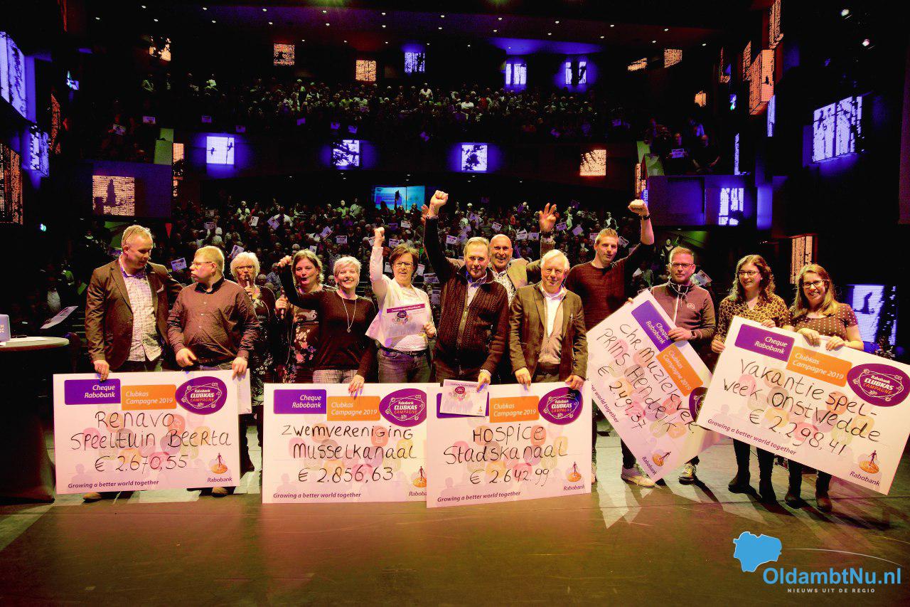 Harry Scholte, directievoorzitter Rabobank Zuid en Oost Groningen: ‘Iedereen is natuurlijk winnaar tijdens deze avond. Alle clubs gaan met een mooie cheque naar huis.’ Elke club kreeg €100,– en €6,89 per stem. Er is fantastisch en ontzettend creatief campagne gevoerd. In vier categorieën deelde Rabobank vier bonusprijzen van €250 uit. De bonuswinnaars waren Set Uppers Winschoten, Zonnebloem Alteveer, Onstwedde en Vlagtwedde, FTC Musselkanaal en ASVB Blijham.