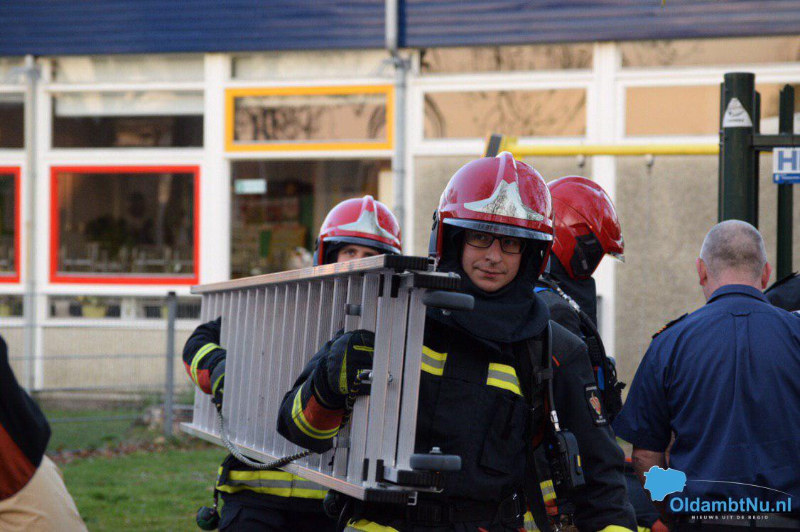 Volgens de melding zou er brand zijn geweest in het ketelhuis van de basisschool die zit gevestigd aan de Beukenlaan. Eenmaal ter plekke heeft de brandweer dit scenario geoefend.