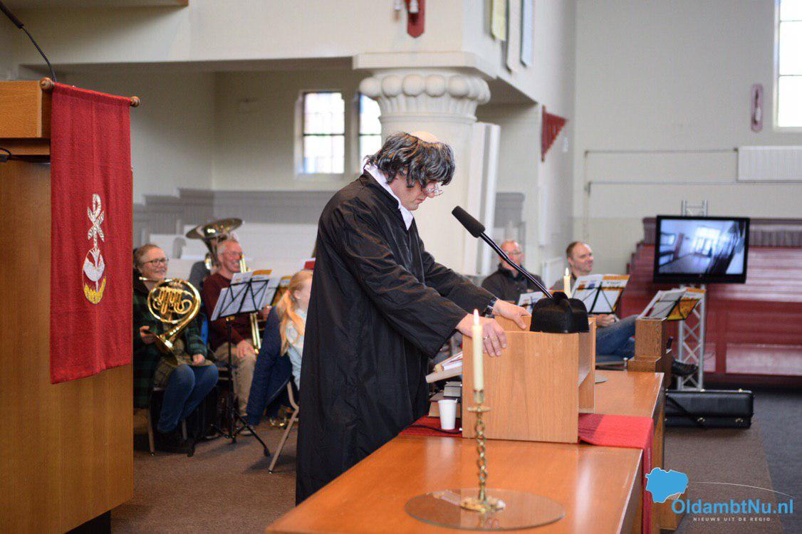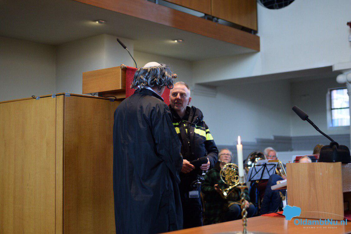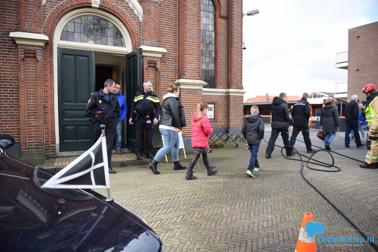 Als ze vragen wat er in de kerk gaande is zegt hij dat het een afscheid ’s dienst is van de 100jarige “ome Dirk” waar nu een man of 50 zitten een band, de dominee en ome dirk natuurlijk. Besluit de brandweer de kerkte ontruimen…. Maar gaan ze eerst ontruimen ja dan heb je paniek en willen de gasten ome Dirk ook mee naar buiten hebben.