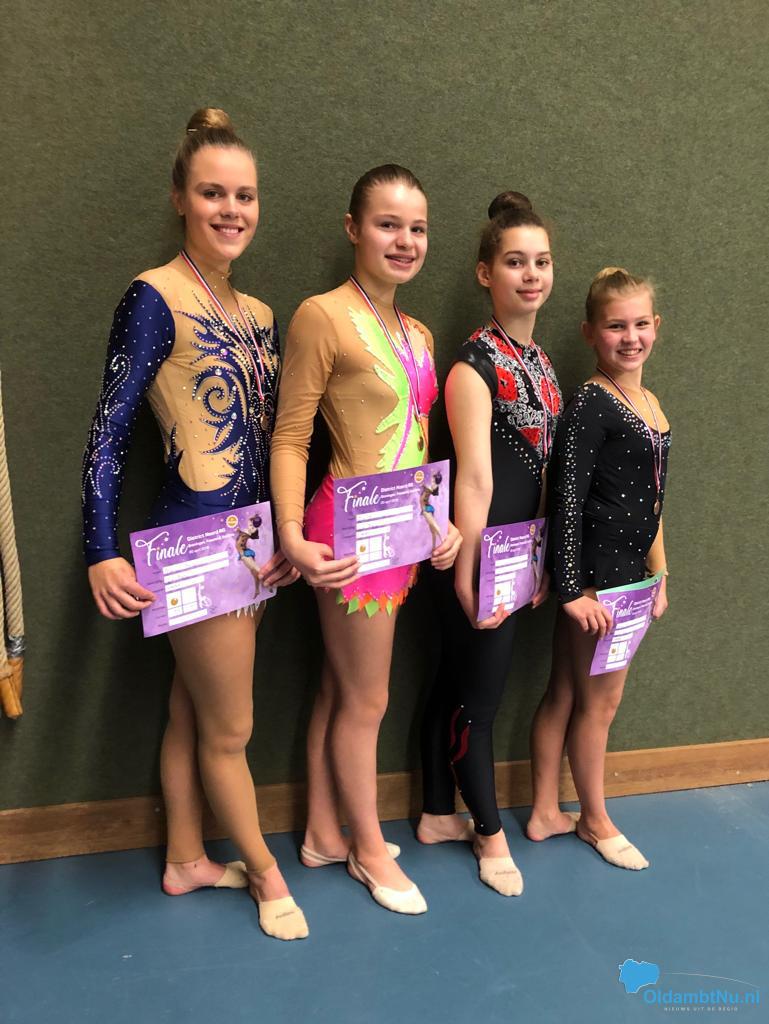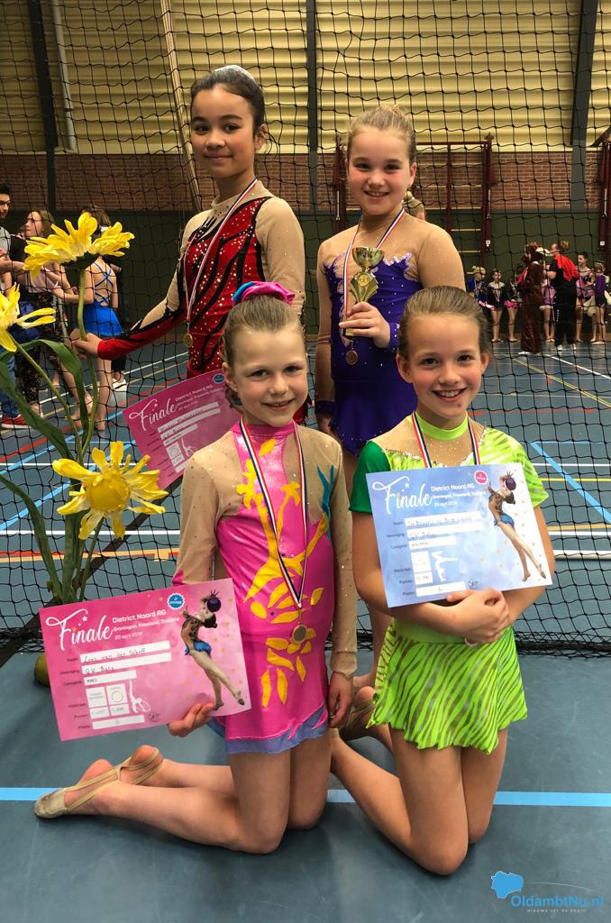 Winschoten – Zaterdag 20 april was de sporthal in Zuidlaren de plek waar gestreden werd om de district-titels. Alle clubs uit de drie noordelijke provincies hadden dmv twee plaatsingswedstrijden en ook nog een halve finale een aantal afgevaardigden. Naast de individuele oefeningen werd er ook in de duo-klasse deelgenomen.
