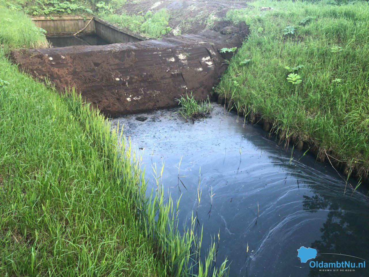 Het waterschap laat weten te onderzoeken wat voor een stof in het water ligt, waar het vandaan komt en wat de gevolgen zijn. Tijdelijk hebben zij de sloot afgedamd.