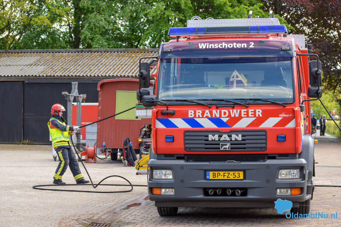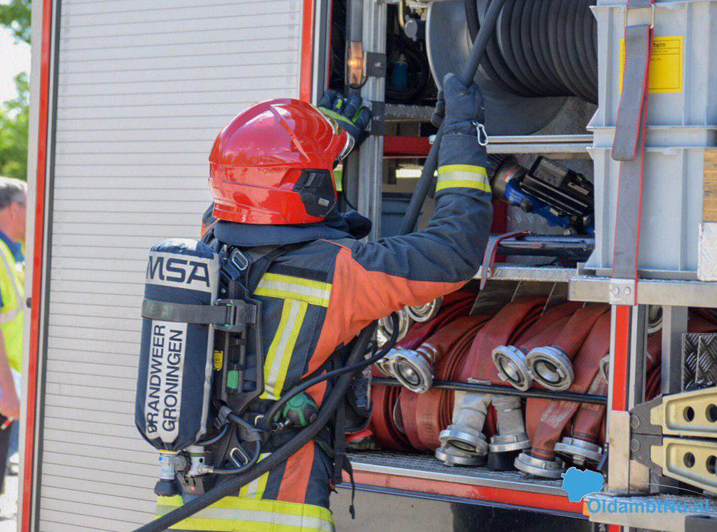 Brandweer Winschoten in actie tijdens brandweerwedstrijd in Leek