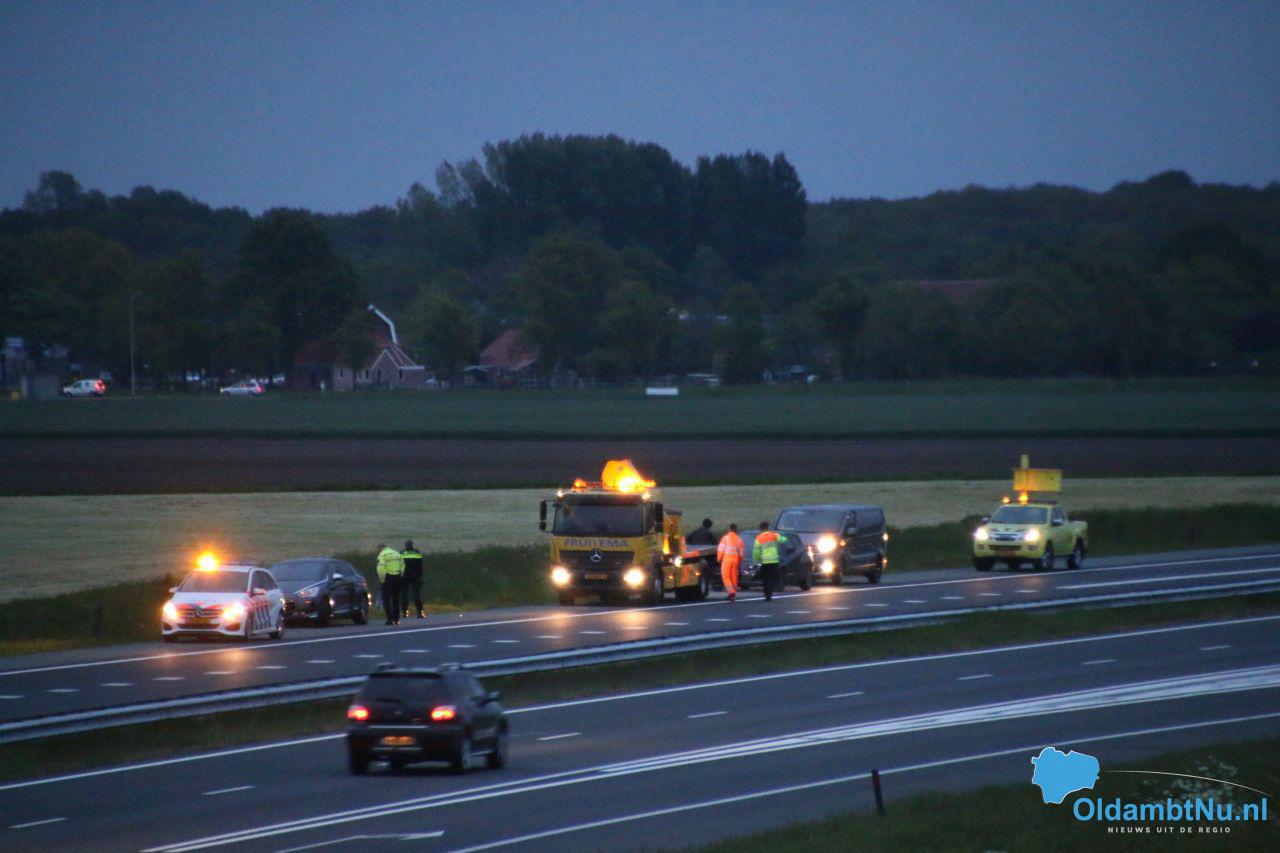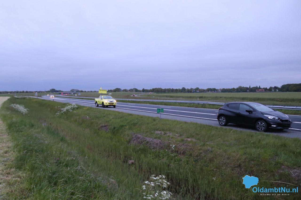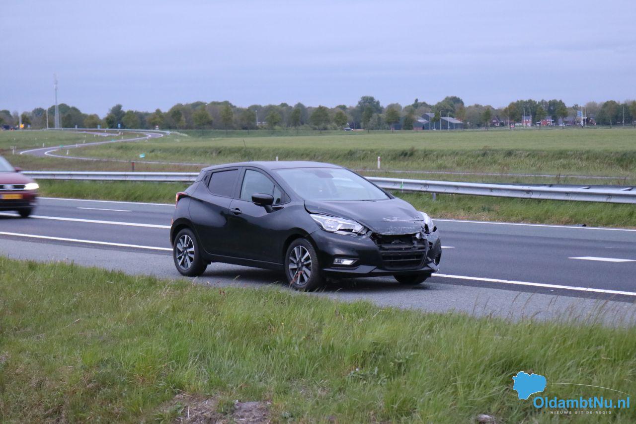 Auto beschadigd na ongeluk op A7