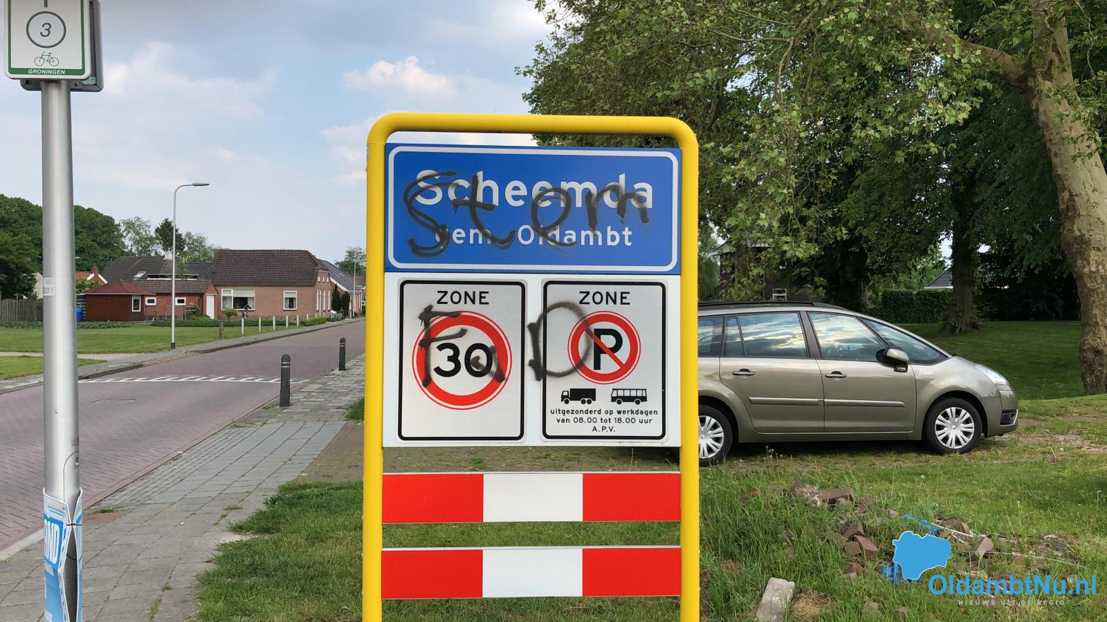 ScheemdaEen plaatsnaambord aan de Molenstraat is door onbekenden met graffiti beklad met de tekst: ‘Stem FvD’