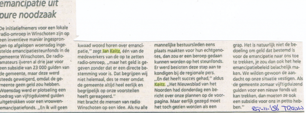 25 Jaar Radio Winschoten: Radio Winschoten in het nieuws en beelden van de eerste locatie
