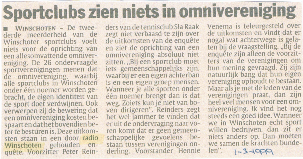 Een van de belangrijkste taken van een lokale omroepen is het weergeven van nieuwsfeiten, echter er waren in het jaar momenten dat er domweg niets te melden viel. Met name de sportredactie vulde dat “nieuwsgat” regelmatig op door dan een enquête te houden over een actueel onderwerp. De uitkomst werd dan steevast door de lokale pers weergegeven.