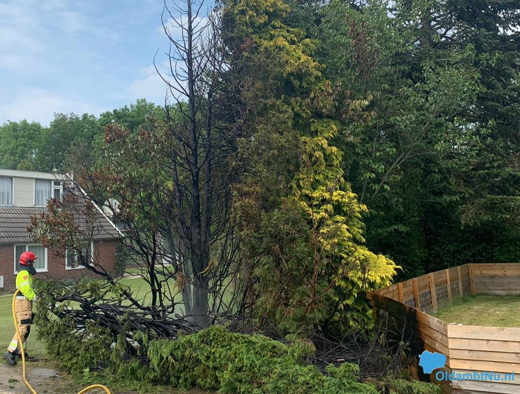 Eenmaal ter plekke bleek een grote conifeer vlam te hebben gevat. De brandweer heeft het vuur onder controle weten te krijgen. De oorzaak van de brand is onbekend.