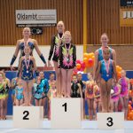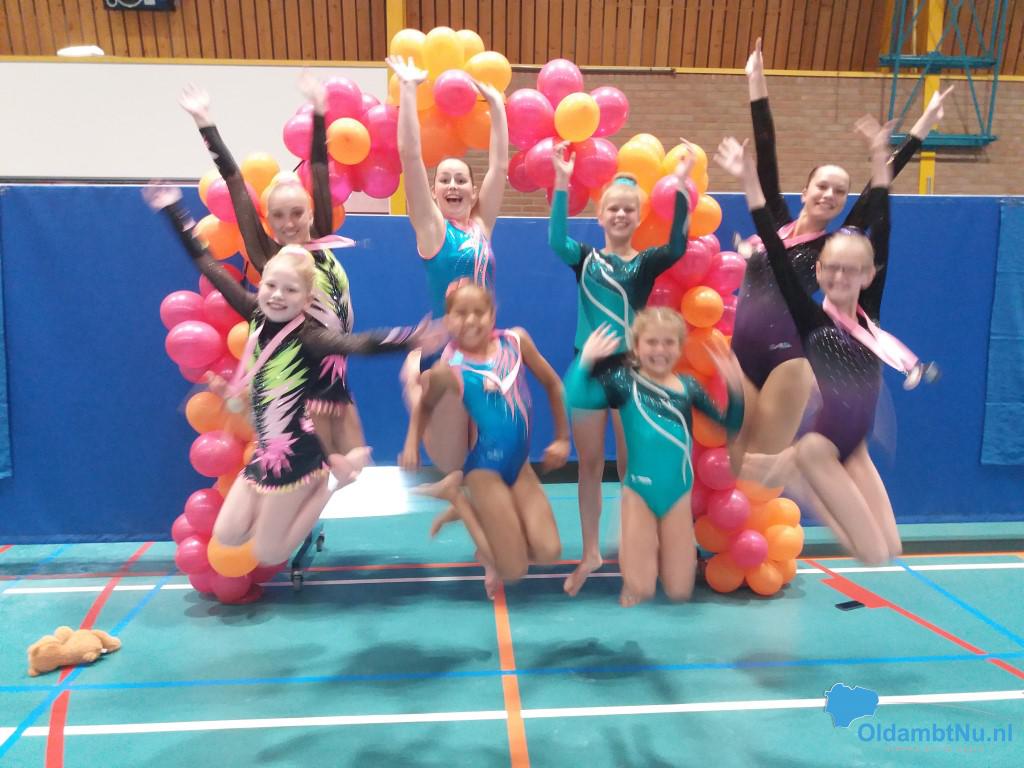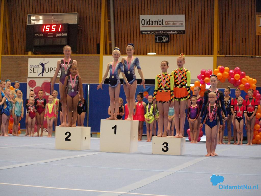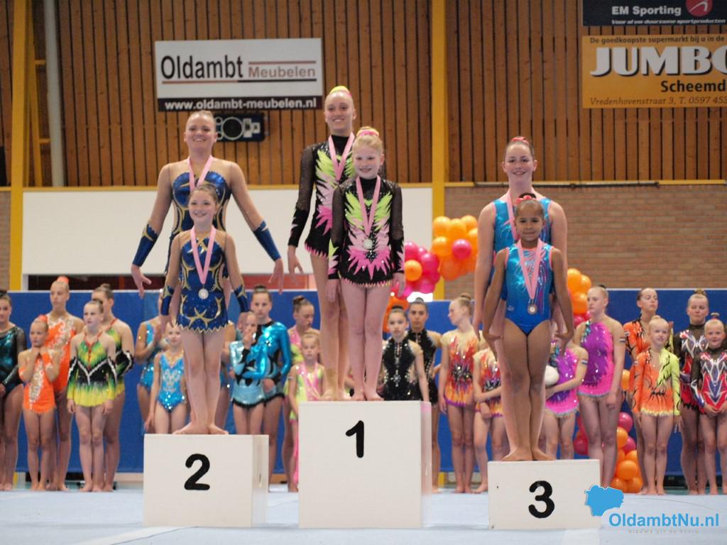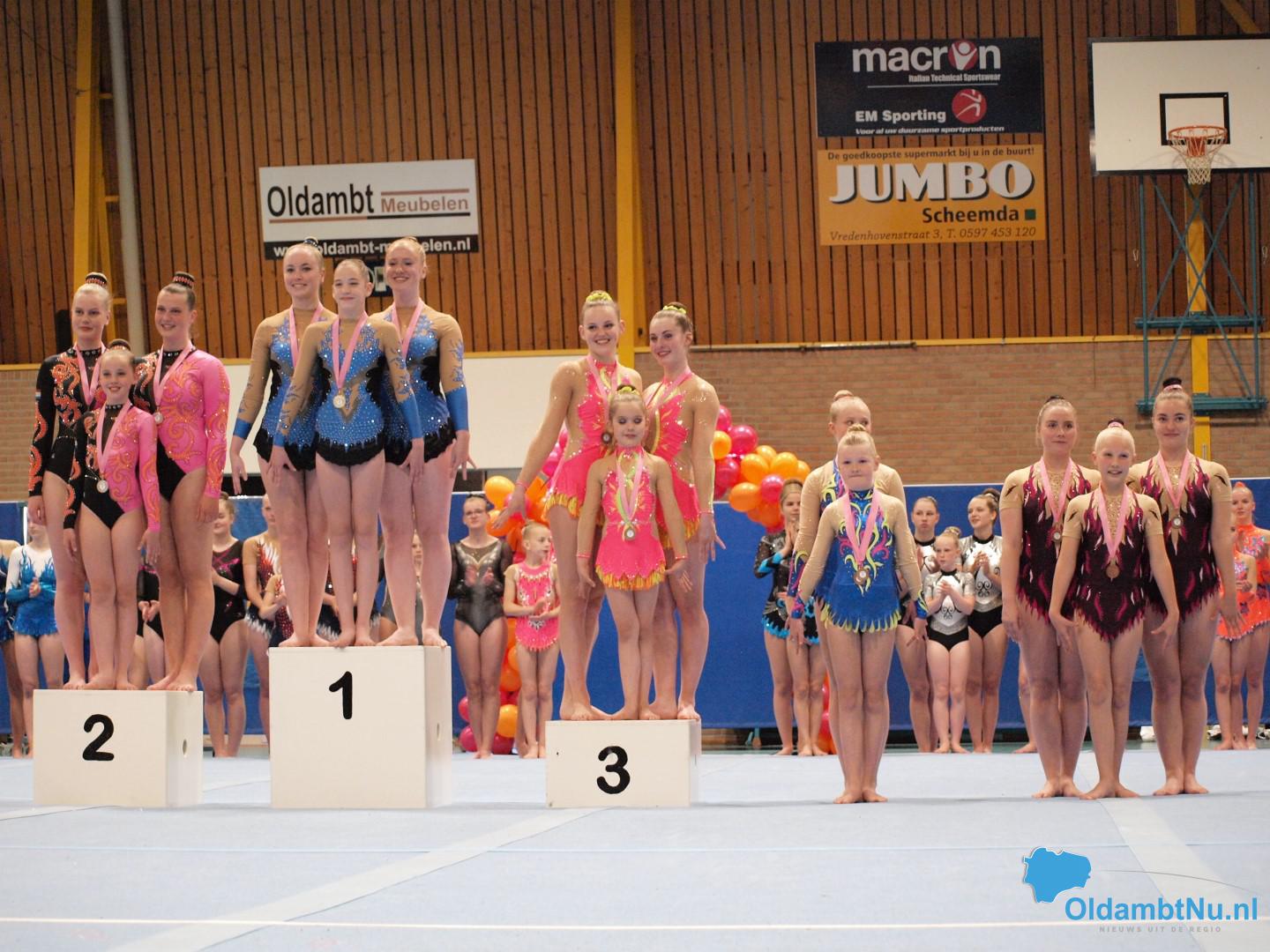 Op de zondag was het een lange dag met veel niveaus. Bij de duo’s D jeugd was er een eerste plaats voor Denise Hollander en Riva Werkman van Bato. Mirna van der Grind en Florianne Bakema van het Turninstituut behaalden het zilver en het brons ging naar Charlotte Hilverts en Mylene Horrel. Bij de senioren E-lijn werd het goud behaald door Myrthe Hilverts, Merle Smits en Laura Horrel.