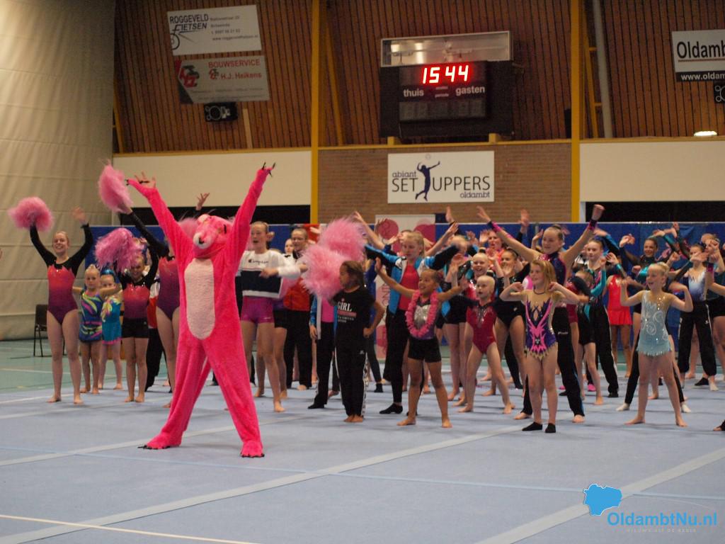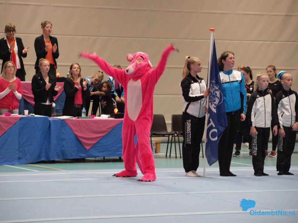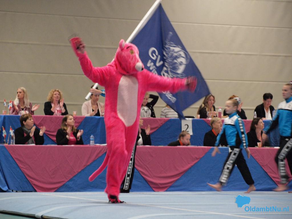 Scheemda – In de Eextahal in Scheemda werden afgelopen weekend de Open Groninger Acro Kampioenschappen gehouden. Bijna 450 deelnemers van verenigingen uit heel Nederland vertoonden het hele weekend vele prachtige acrobatische oefeningen. De mascotte Pinkster Panther was ook weer aanwezig en wist de sfeer er goed in te krijgen. De organisatie was in handen van de Gymnastiek Vereniging Bato uit Winschoten en het Turninstituut uit Hoogezand.