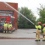 Bad Nieuweschans – Met de vlag half stok en een ‘water’ ereboog voor de kazerne heeft het brandweerkorps Bad Nieuweschans zaterdagmiddag om 13.00 uur stil gestaan om te herdenken dat bij hulpverlening ook slachtoffers vallen.