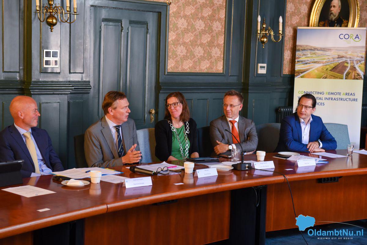 Winschoten/Scheemda – Minister Bruno Bruins van Medische Zorg en staatssecretaris Raymond Knops hebben vandaag een bezoek gebracht aan de gemeente Oldambt. De samenwerking van Oldambt met de Duitse grensgemeenten stond centraal tijdens het bezoek van de minister en staatssecretaris. Er werd tijdens verschillende presentaties gesproken over de mogelijkheden en uitdagingen van grensoverschrijdende projecten.