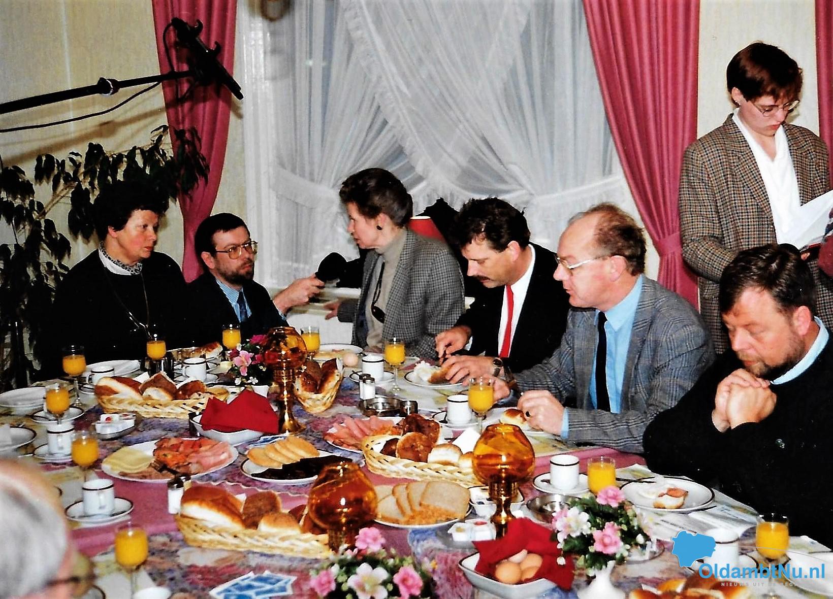 Op de foto’s herkenbare hoofdrolspelers waren Jannie Siertsema (VVD), Altjo Bruins (PvdA), Bob Visser (SDW), Appie Kootstra (Groen Links), Ger Klein (D’66) en Ada Boerma (CDA). De laatste was meen ik me te herinneren de enige CDA-er in het land die wel won… Ze was dan ook zeer uitgelaten en wat maar weinigen weten is, dat zij, Altjo Bruins en ondergetekende achterop een bierviltje de eerste contouren schetsten van wat later het cultuurcentrum aan het Oldambtplein zou worden.