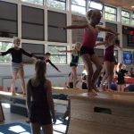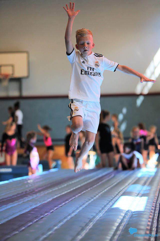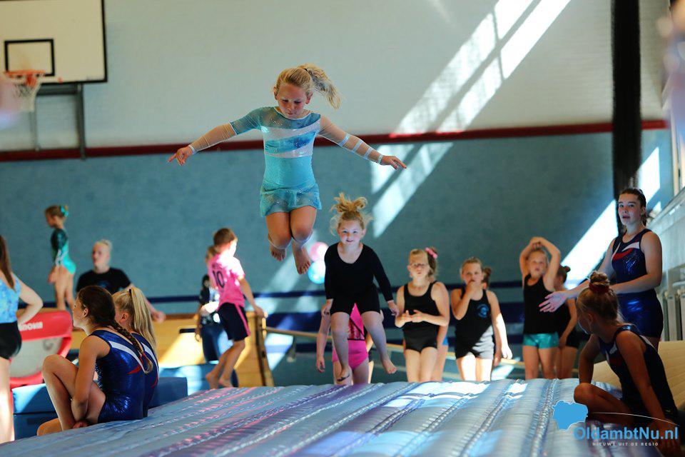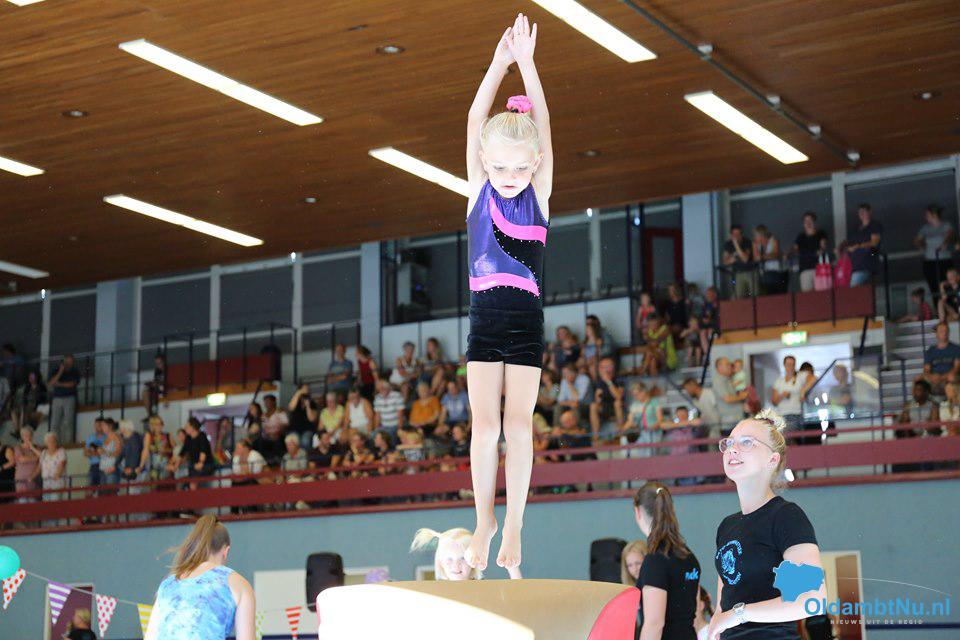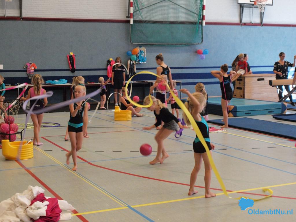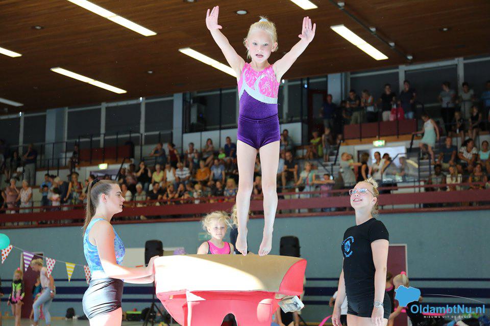 De ochtend werd natuurlijk begonnen met een super leuke warming up dansje zodat iedereen lekker warm en los kwam. Daarna lieten de allerjongste leden een vrolijke oefening zien op verschillende muziekjes. Vervolgens lieten de gymnasten hun kunsten zien op de verschillende toestelbanen en konden ze zich uitleven op de twee opblaasbare tumblingbanen. Ook werd er kennisgemaakt met de ritmische sportgymnastiek. De oudere leden van de Damesgymfit groep lieten samen met de jongere turnsters van de turnmixgroep een zomers dansje zien en de recreatieve ritmische meisjes lieten meerdere oefeningen zien met o.a. touw en zwaaidoeken.