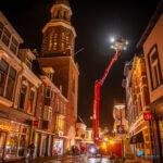 Bij een binnenverkenning door de eerste tankautospuit kwam een persoon van binnen naar buiten rennen. Deze persoon was bezig geweest met werkzaamheden aan de elektra en meldde brand op een verdieping bij de maquette. Daarnaast was onduidelijk hoeveel personen zich nog in de toren bevonden. Een stadsgids zou met een groep naar boven zijn gegaan. Door paniek kon de melder niet direct aangeven waar iedereen was; twee personen bleken voor de grap te zijn opgesloten in de oude cellen, waarbij de sleutel niet direct gevonden kon worden.