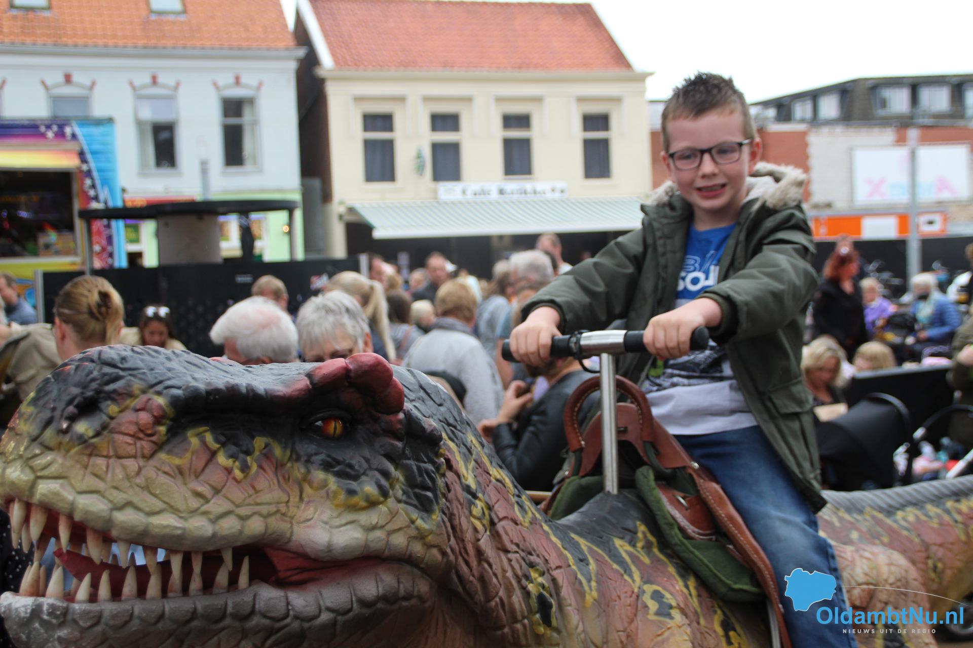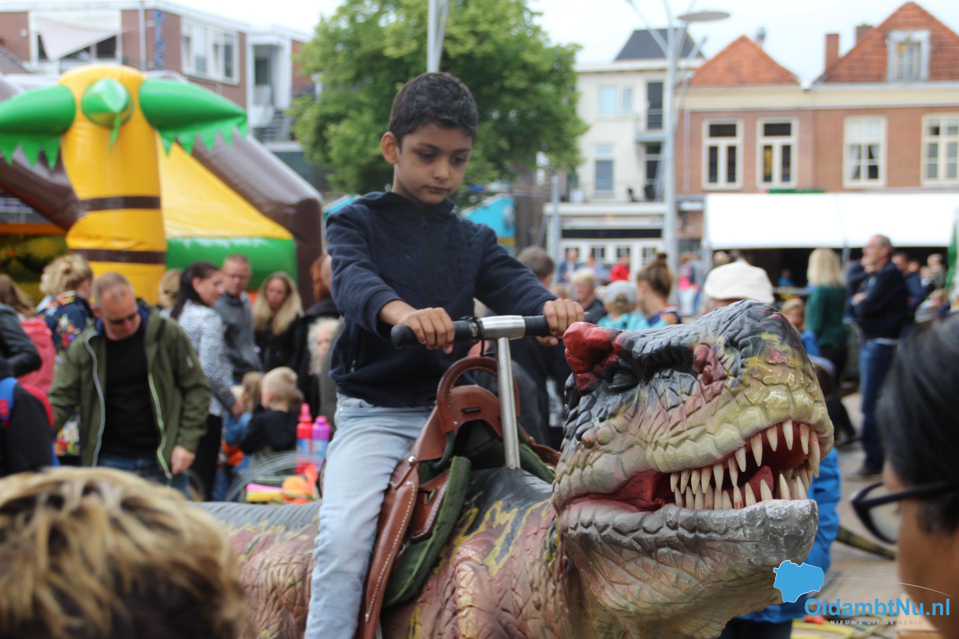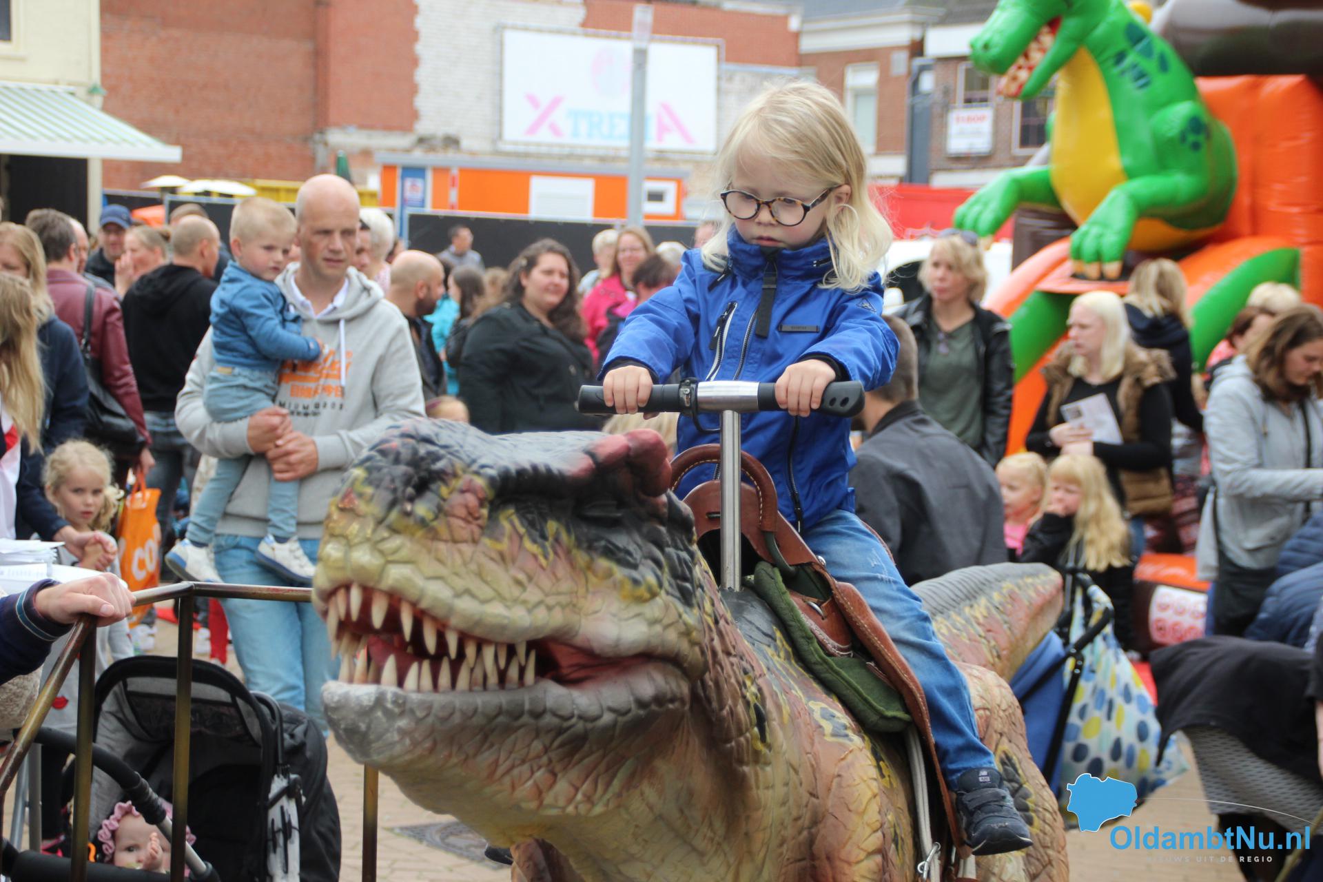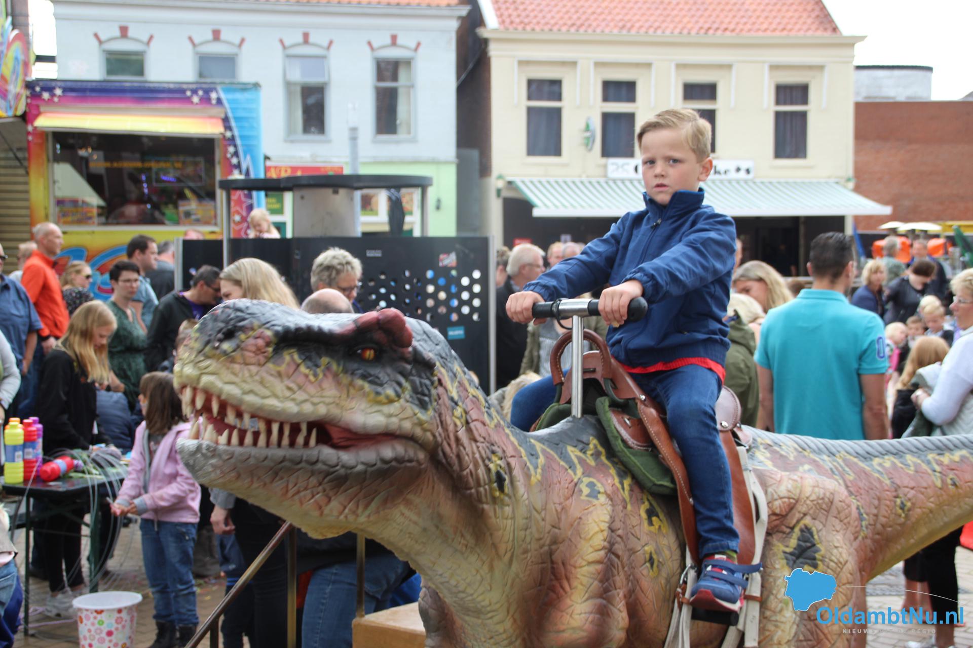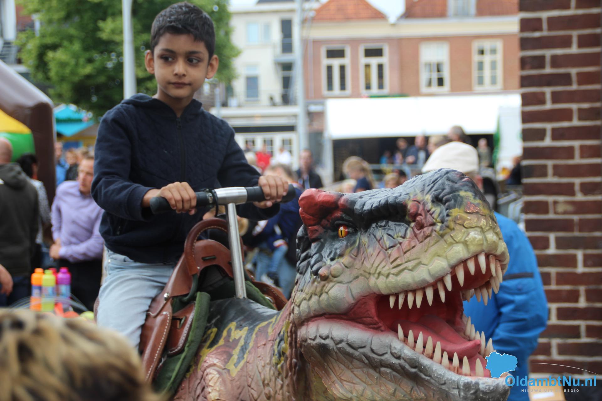 Kinderen konden een ritje maken op een van de twee levensechte dinosaurussen die vanuit Dinopark Tenaxx Wedde op het Marktplein stonden. Daarbij konden de kinderen die het durfden de dino’s aaien.  Ook was er een springkussen. De kinderen vermaakten zich prima.