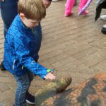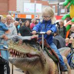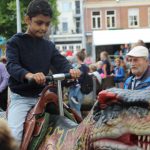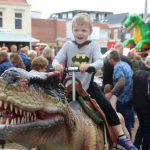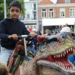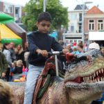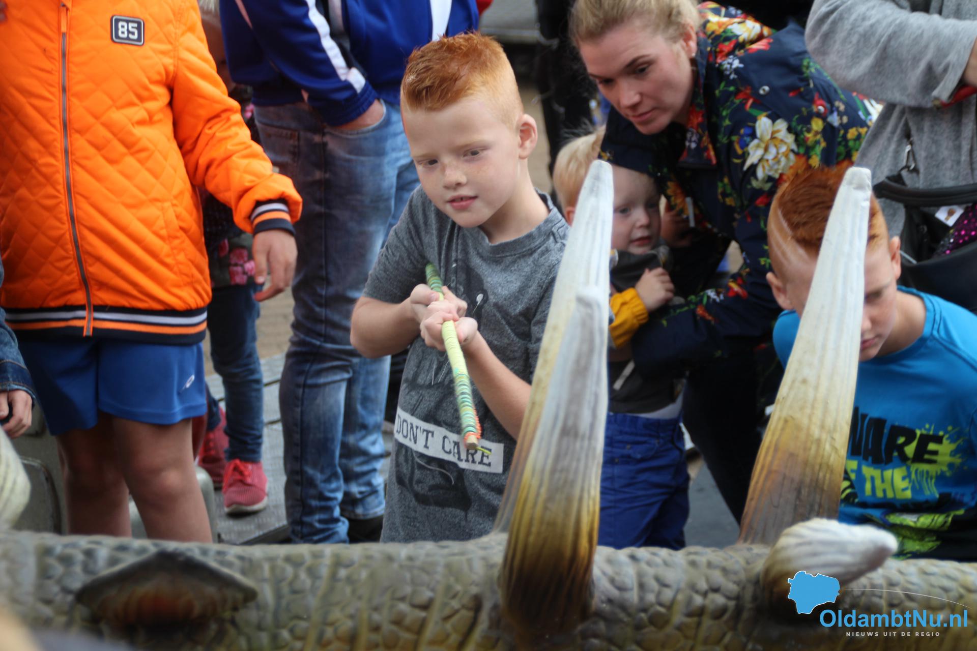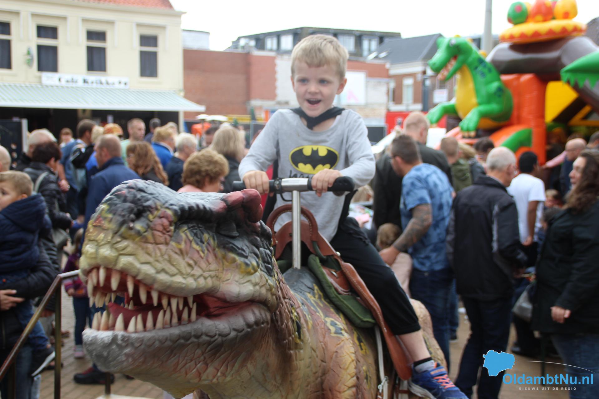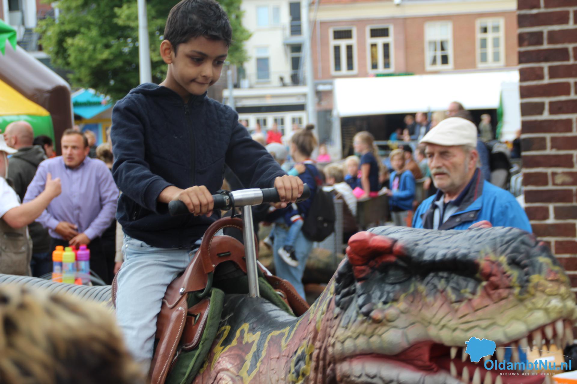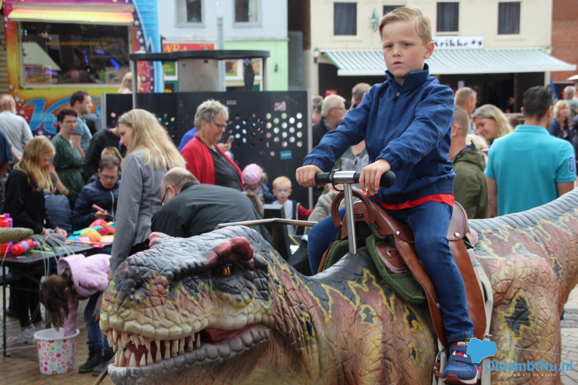 Kinderen konden een ritje maken op een van de twee levensechte dinosaurussen die vanuit Dinopark Tenaxx Wedde op het Marktplein stonden. Daarbij konden de kinderen die het durfden de dino’s aaien.  Ook was er een springkussen. De kinderen vermaakten zich prima.