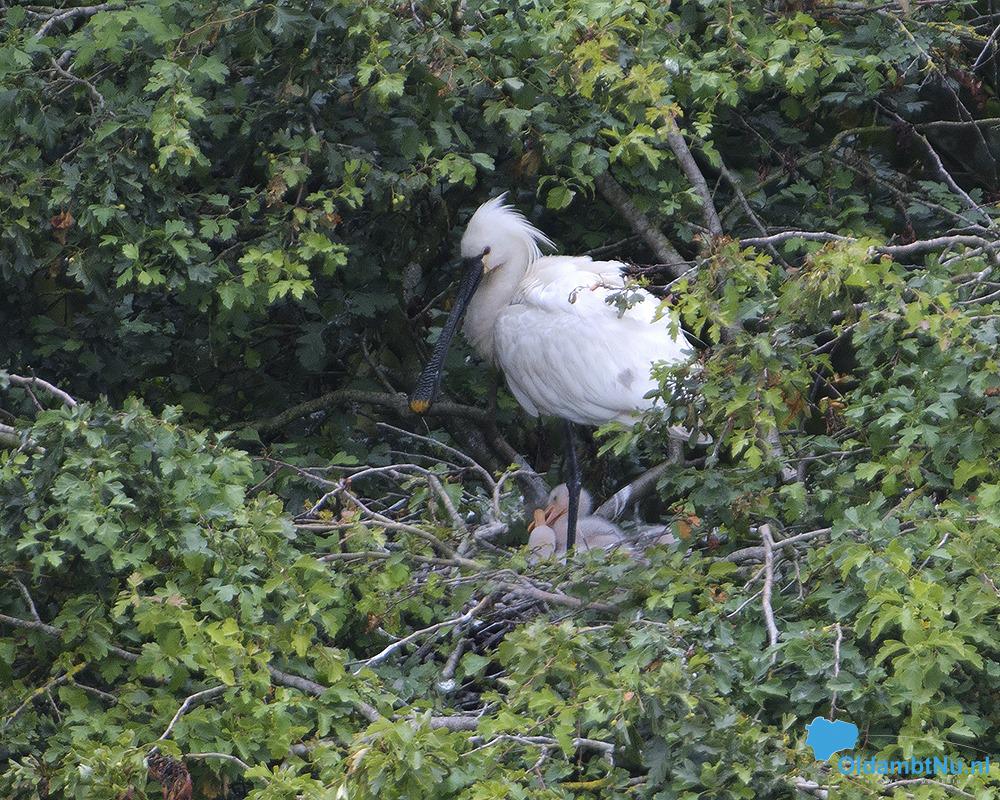 Winschoten – Winschoten is sinds kort een nieuwe stadsvogel rijker: de lepelaar. Deze vogelsoort heeft dit voorjaar succesvol gebroed in het Stadspark en heeft nu twee of mogelijk zelfs drie jongen. Volgens ecologen van Staatsbosbeheer en de Provincie Groningen is dit broedgeval heel bijzonder. De lepelaar is normaal gesproken namelijk een vogel van het Waddengebied.