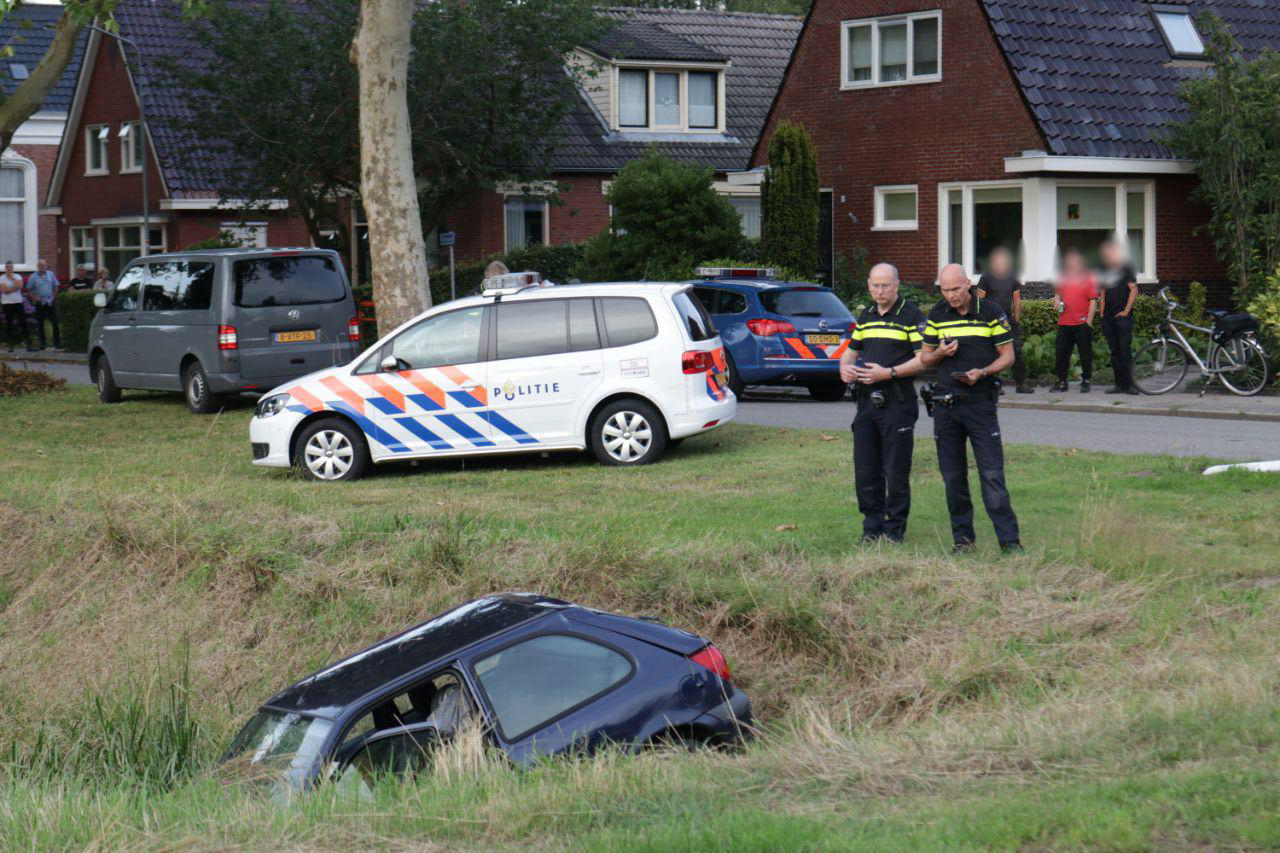 Scheemda – Zondagavond is een auto in een sloot geraakt aan de Oosterstraat in Scheemda. De bestuurder en zijn passagier zijn zonder letsel uit het voertuig geklommen.