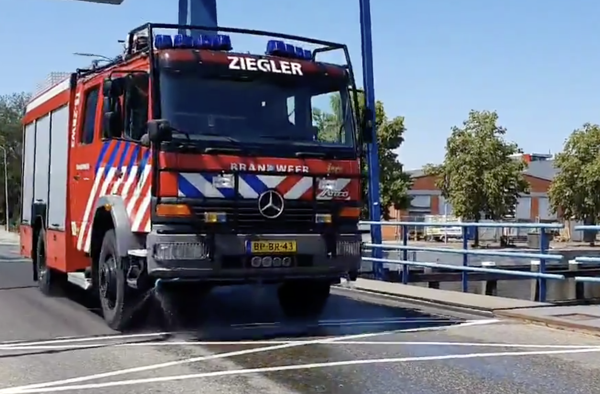 Winschoten – Ziegler Brandweertechniek gevestigd aan de Industrieweg in Winschoten grapte woensdag op het sociale media netwerk: Twitter. Na diverse bruggen die in storing stonden boodt de bouwer van brandweervoertuigen hun hulp aan. “Hey Provincie Groningen en gemeente Oldambt, wij helpen wel even met koelen van die brug”. Naast deze tekst deelden ze een video waarbij een brandweerauto het wegdek nat spoot.