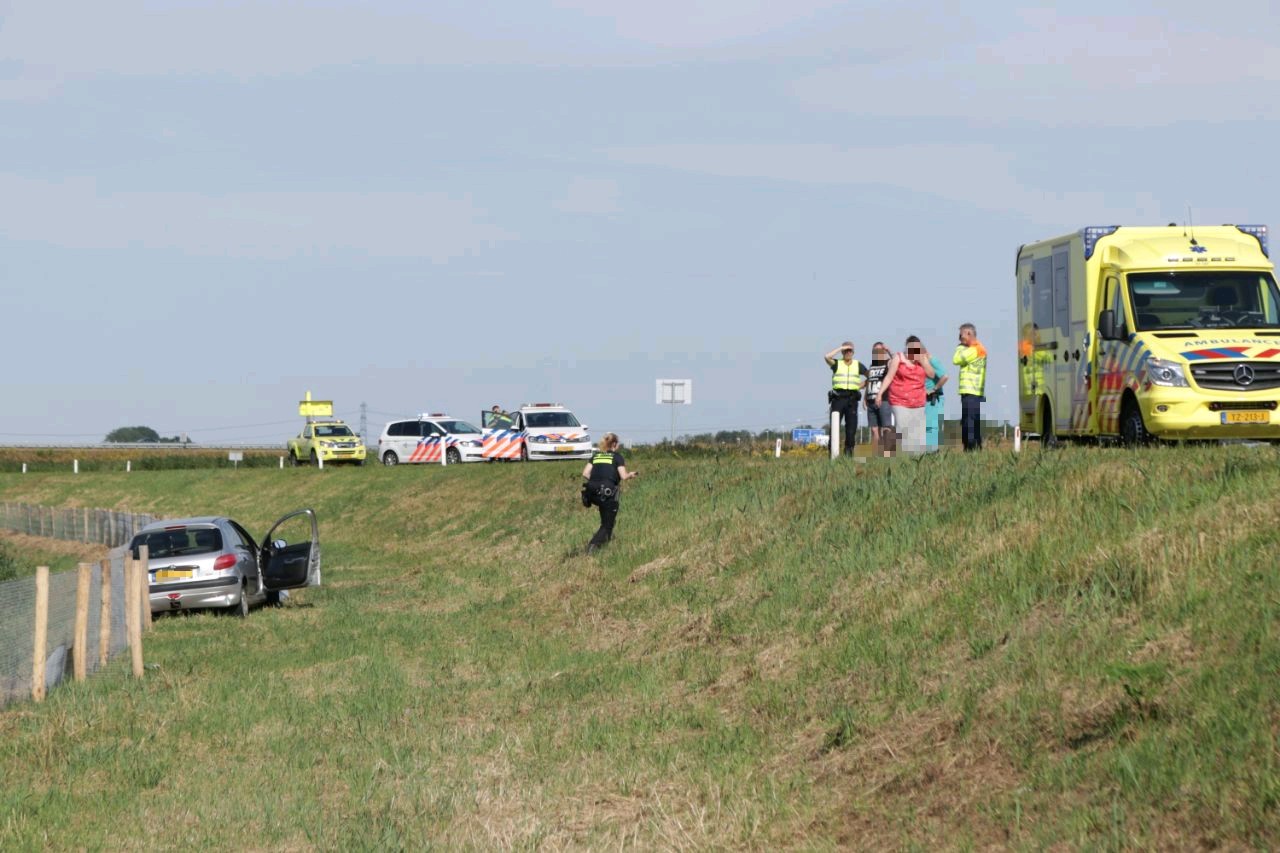 De politie heeft het ongeval in kaart gebracht en Rijkswaterstaat waarschuwde het overige wegverkeer. Een bergingsbedrijf heeft de auto geborgen.