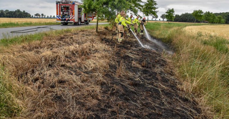 De brandweer heeft de berm omgeploegd en geblust met water.