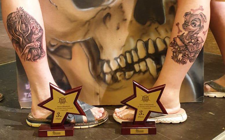 “Vrijdag hebben we tijdens de ‘Best of Blackwork’ de 3e plaats behaald met een zeer aparte tatoeage. Deze zege hebben we te danken aan de zeer strakke lijnen en zachte schaduw.” vertelt Jerry aan OldambtNu.nl. “Zondag hebben we de 3e plek behaald bij ‘Best of Realistisch’. In deze style gaat het er om een tatoeage zo realistisch mogelijk te zetten, zonder lijnwerk en uitsluitend en alleen uit schaduwen.”