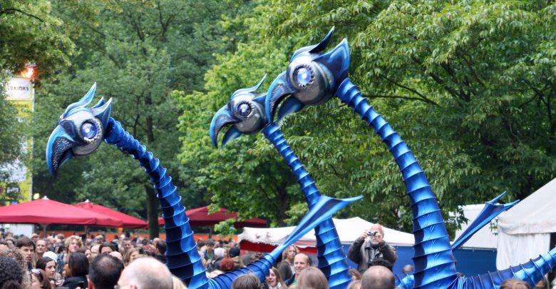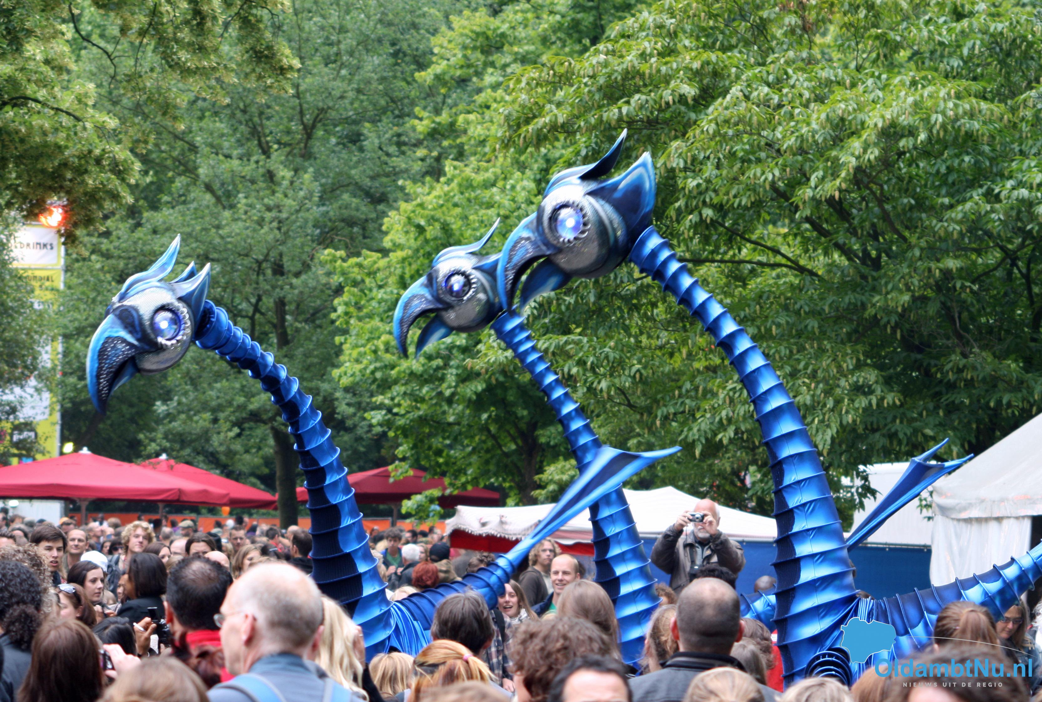 Winschoten – Net als in een trance dwalen deze enorme Blauwe Vogels rond. Van bovenaf kijken deze longnecks op je neer. Je zult ze zeker niet missen als ze de menigte in marcheren. Hun aanpak is vriendelijk en verstandig, maar ze zijn zeker nieuwsgierig. Hun lange, lange vingers zijn kriebelig en hun lange hoofden blijven knikken. Plots bevriezen ze tot stilstand en volgen ze hun leideroproepen in een verbluffende slow motion.