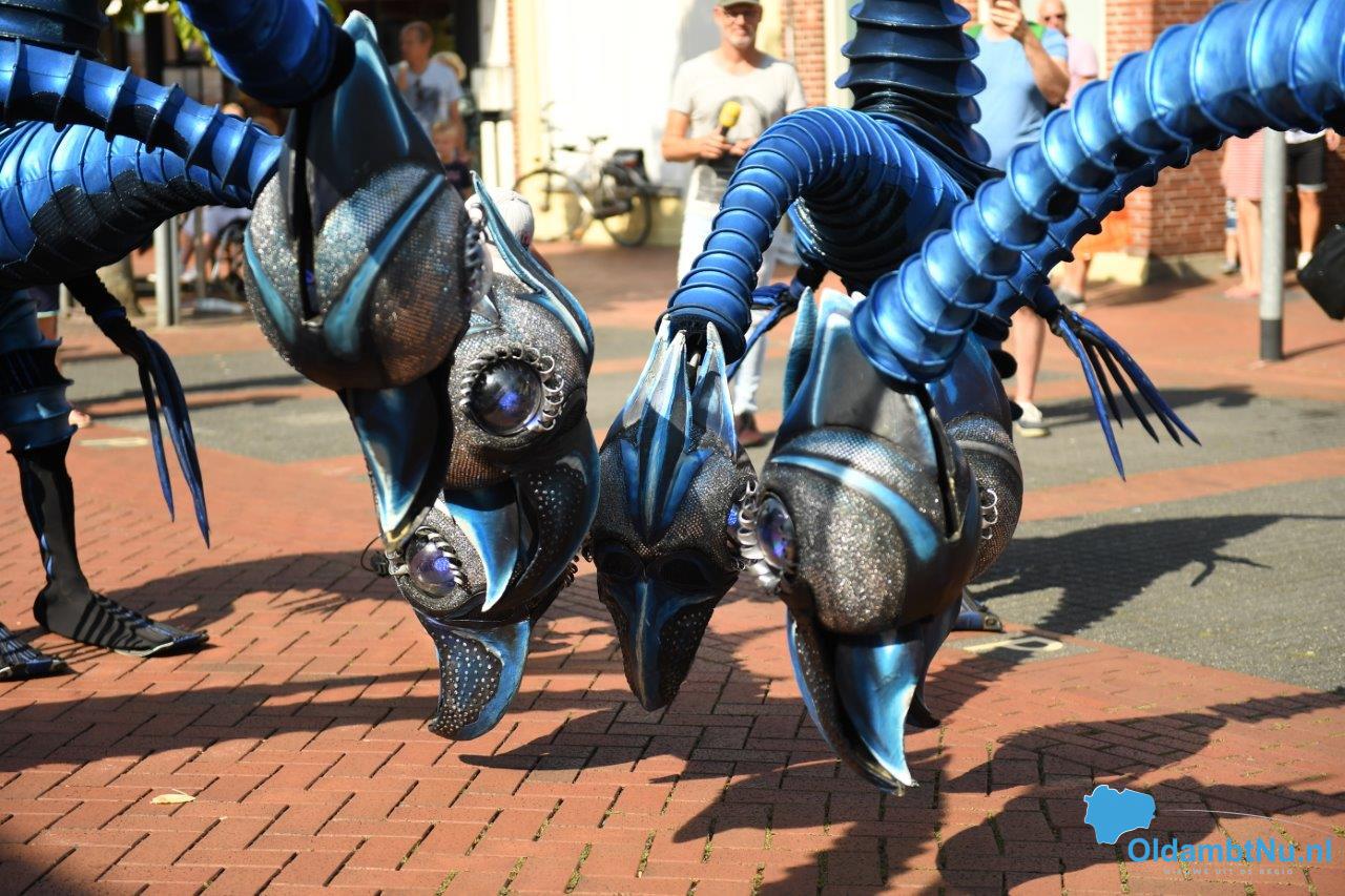 Zaterdag vond er in de binnenstad op diverse plekken een voorstelling plaats. Van paradijsvogels tot wilde zwijnen en vliegende honden, er was voor elk wat wils. Het publiek werd geregeld “aangevallen” door vreemde vogels en hun ijsjes waren dan ook niet altijd veilig. Ook waren er op diverse plekken muzikale optredens en een rolschaats demonstratie. Cap’n Jack & Crew was in de Langestraat neergestreken met een Kinderplein.