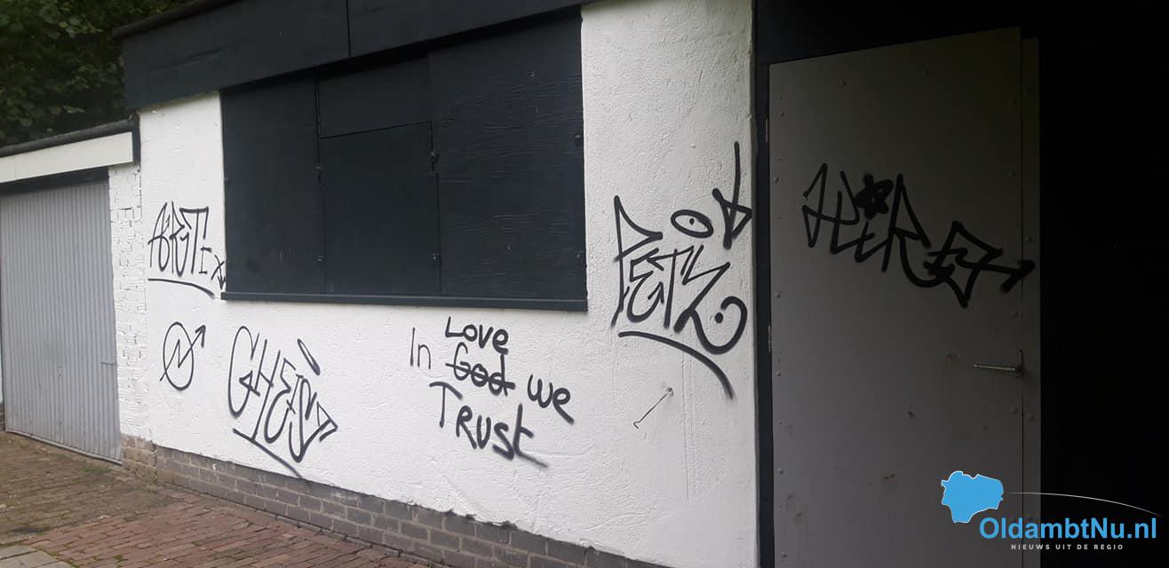 “We hopen dat ze nog weer een keer terug komen om het vervolgens wel netjes achter te laten” schrijft de ijsclub. Op de foto’s, die ze erbij plaatsen, is te zien dat op de muur verschillende graffiti ‘kunstwerken’ zijn gekalkt. Ook is een stuk gras weggebrand.