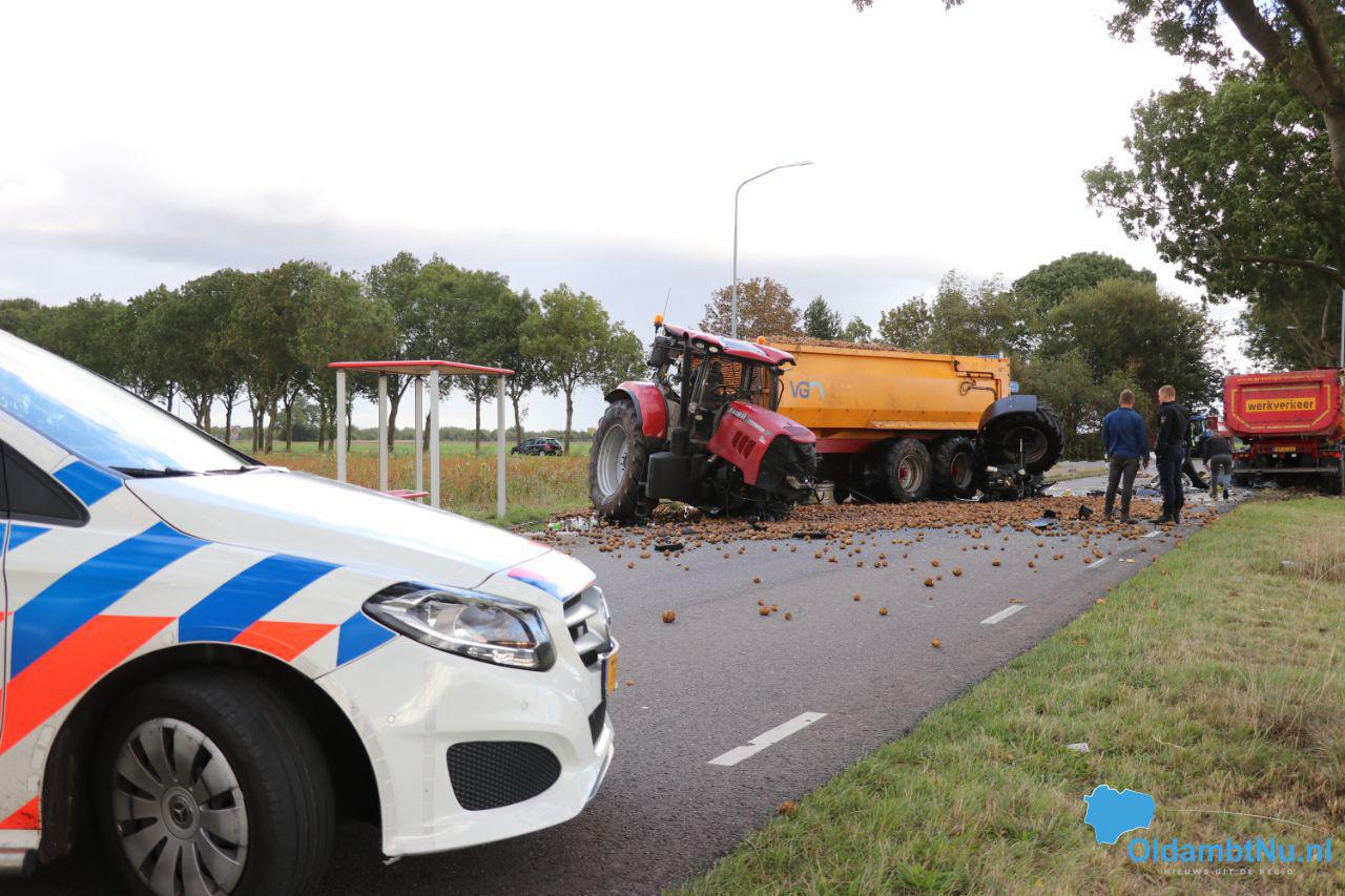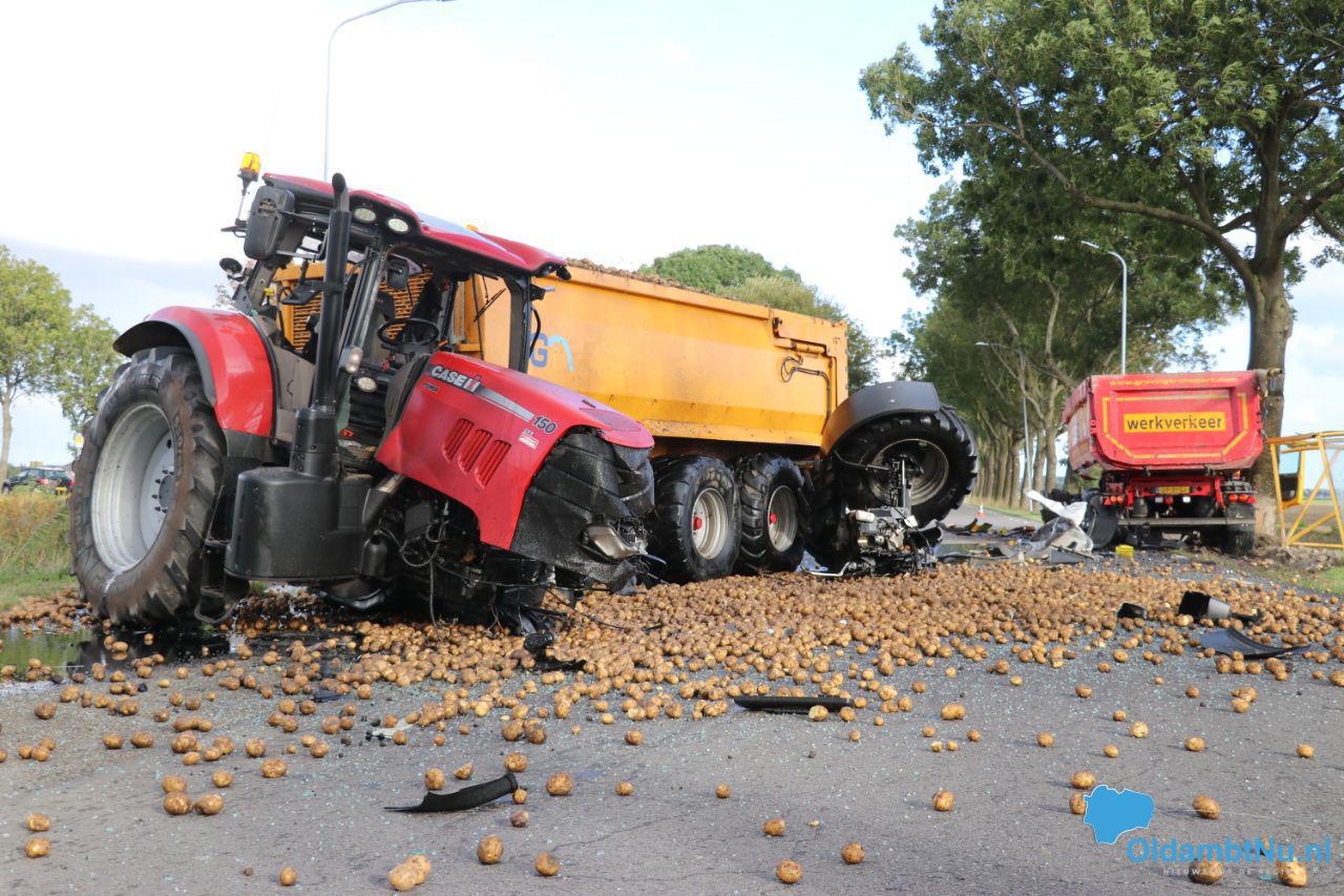 De trekker, die op dat moment aardappelen vervoerde, verloor een groot deel van zijn lading. De ter plaatse gekomen politie handelde het incident af. De weg was tijdens de berging dicht voor overig verkeer.