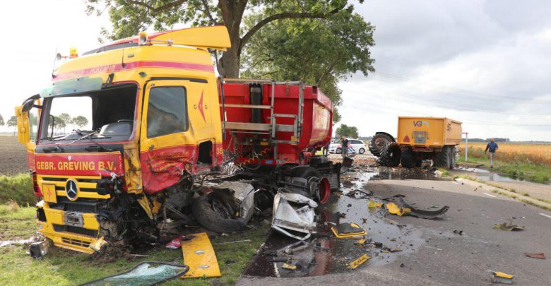 Trekker en vrachtwagen total-loss bij ongeluk Scheemderzwaag