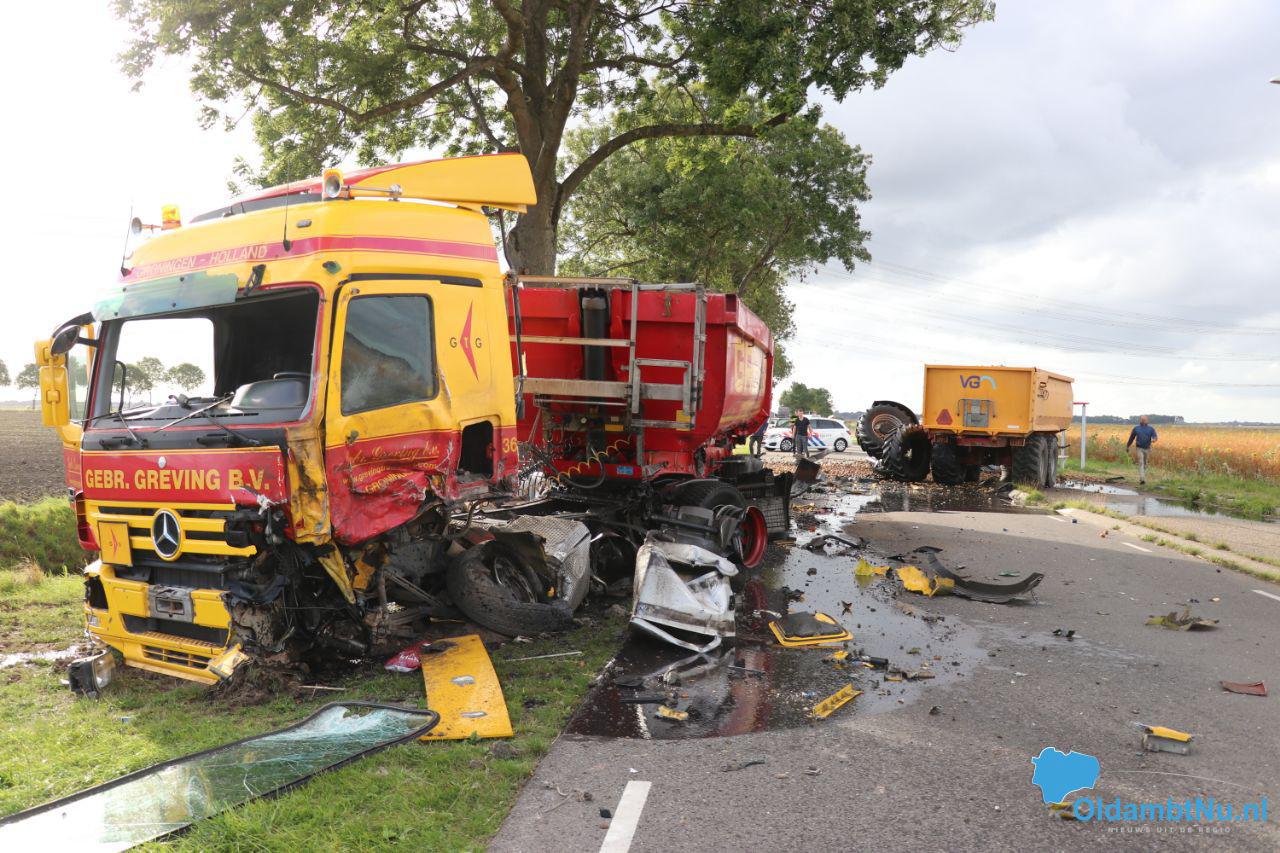 Scheemda – Bij een ongeval op de Scheemderzwaag tussen Scheemda en Noordbroek zijn een trekker en vrachtauto tegen elkaar gebotst. Beide voertuigen zijn total-loss. Bij het ongeval is niemand gewond geraakt.