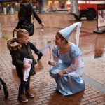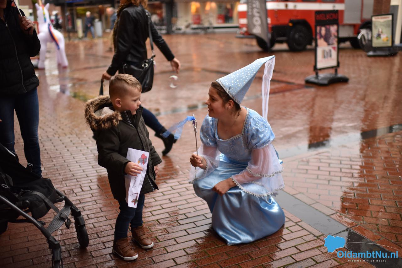 Leerlingen van het Ubbo Emmius College waren verkleed als diverse sprookjesfiguren en kinderen konden door middel van een kleurplaat op “jacht” naar de figuren en stickers verzamelen. In diverse winkels, maar ook brandweerauto’s en een knalroze Cadillac konden kinderen luisteren naar korte verhaaltjes voor allerlei leeftijden en was het mogelijk geschminkt te worden. Om het feest compleet te maken deelde Roodkapje lekkere koekjes uit.