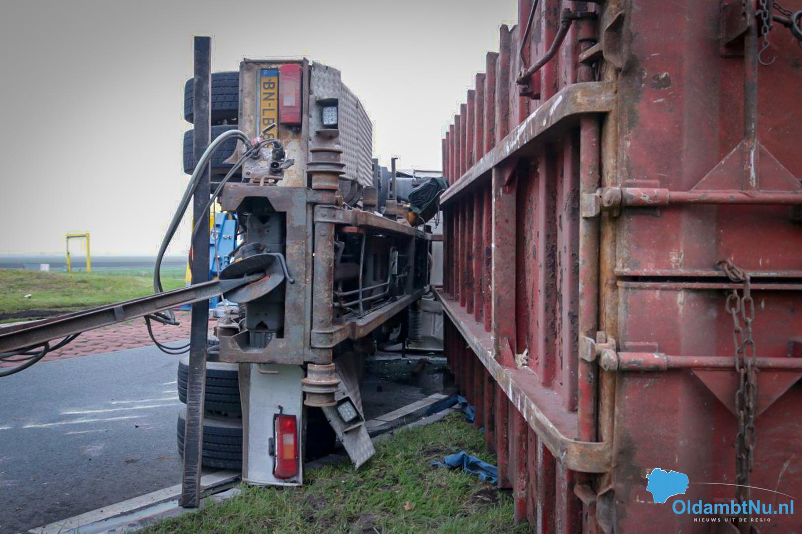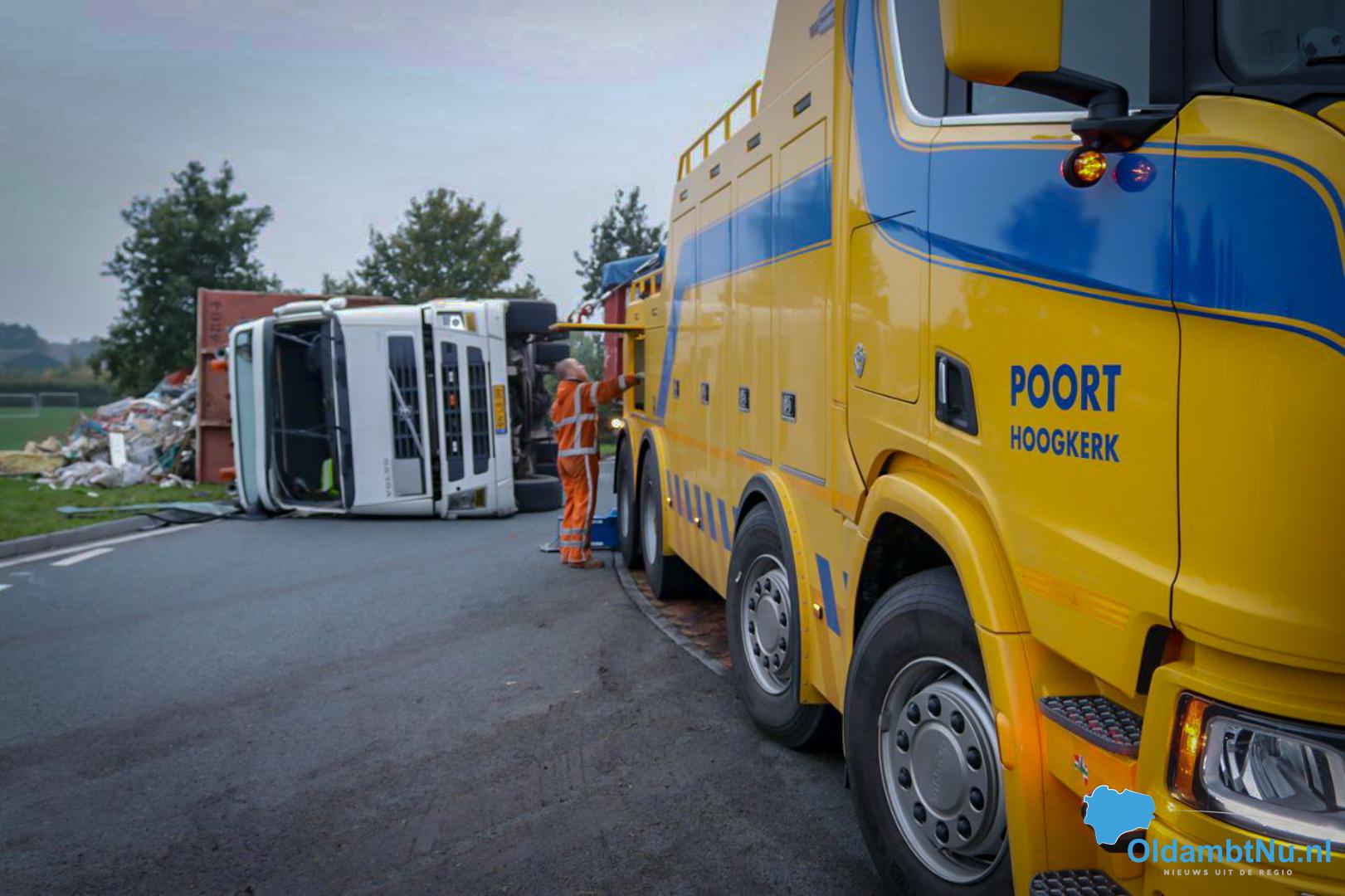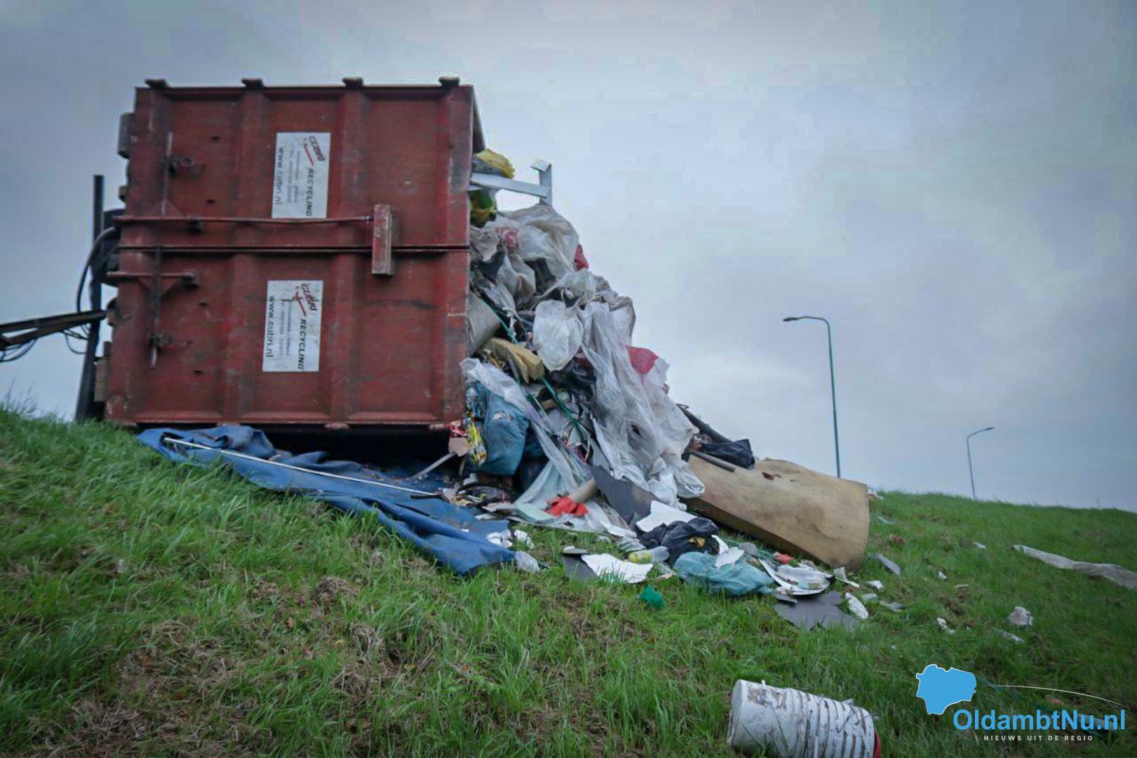 Bergingsbedrijf Poort uit Hoogkerk is met zwaar materiaal bij het incident aanwezig en heeft de vrachtwagen weer op de wielen gezet. Rond het middaguur zal een ander bedrijf de containers inclusief het afval opruimen.